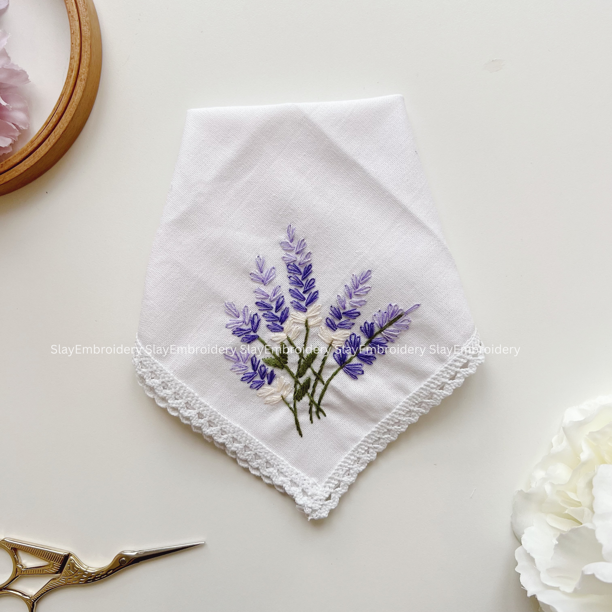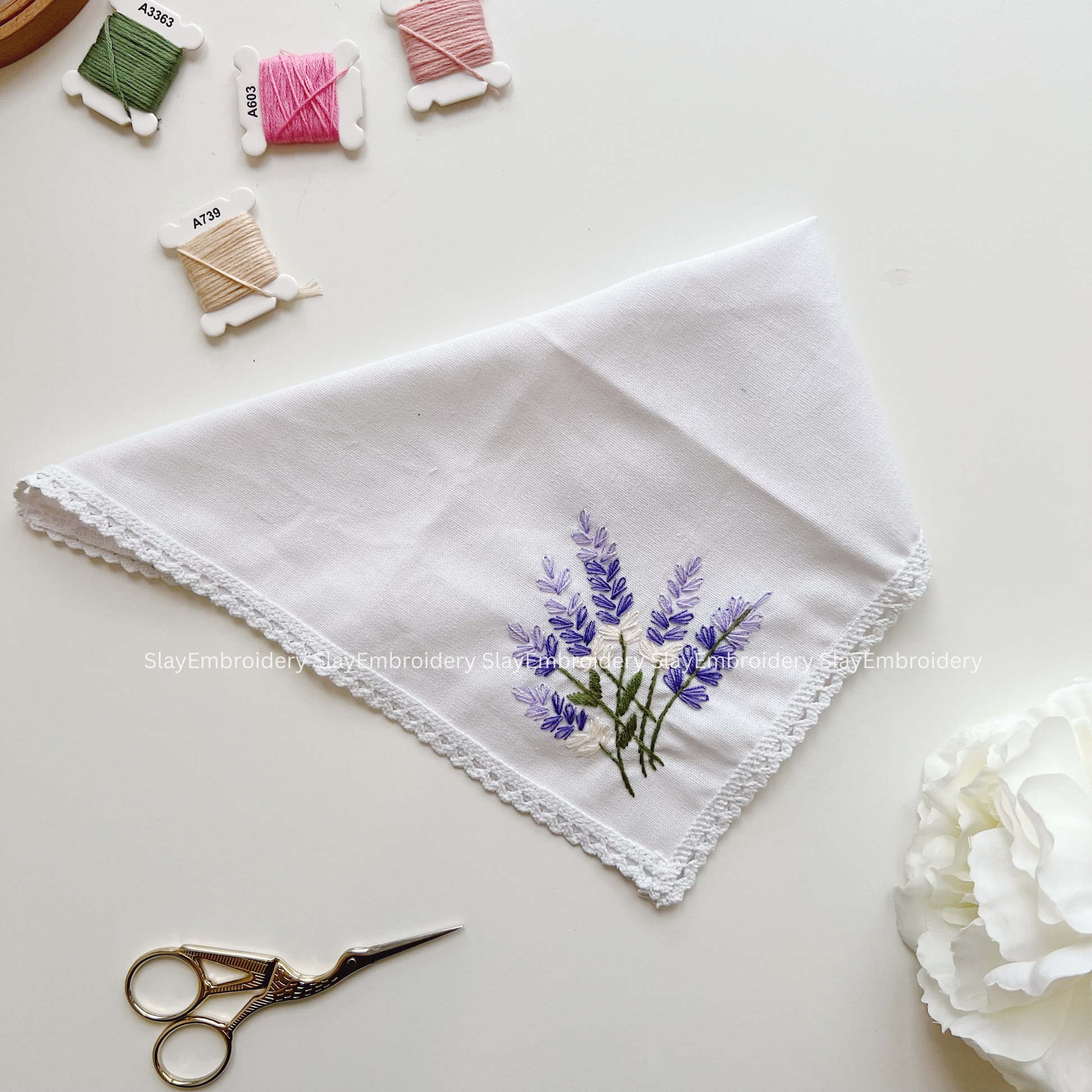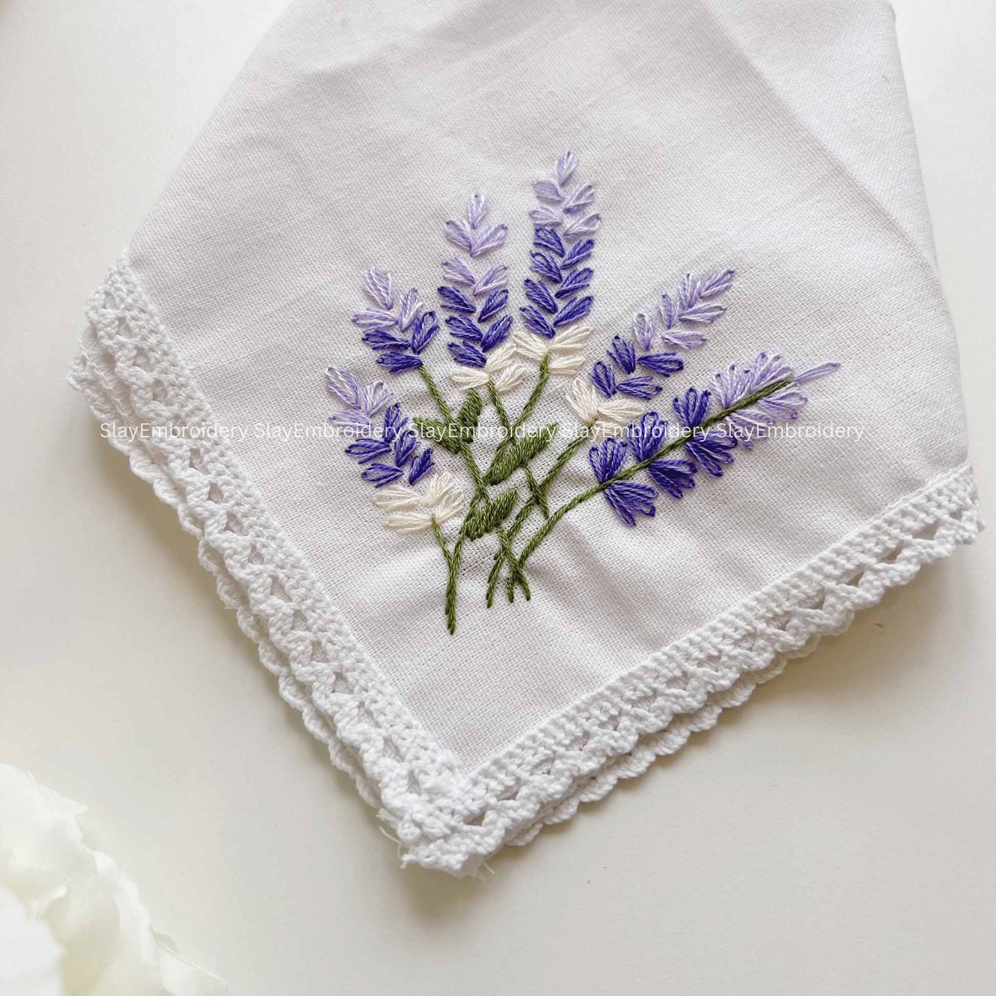 Lavender Wedding Handkerchief, Custom Embroidered Handkerchief, Linen Handkerchiefs