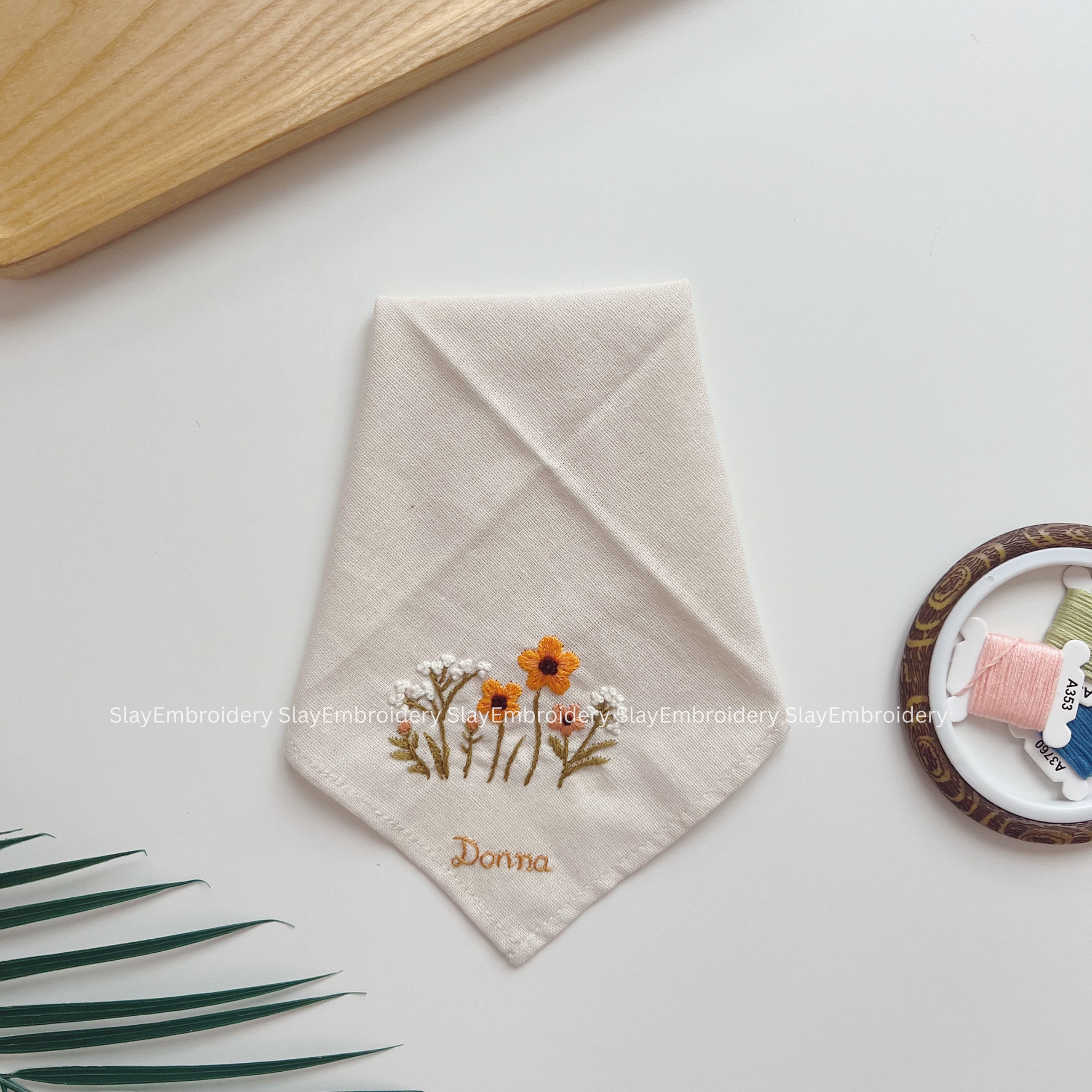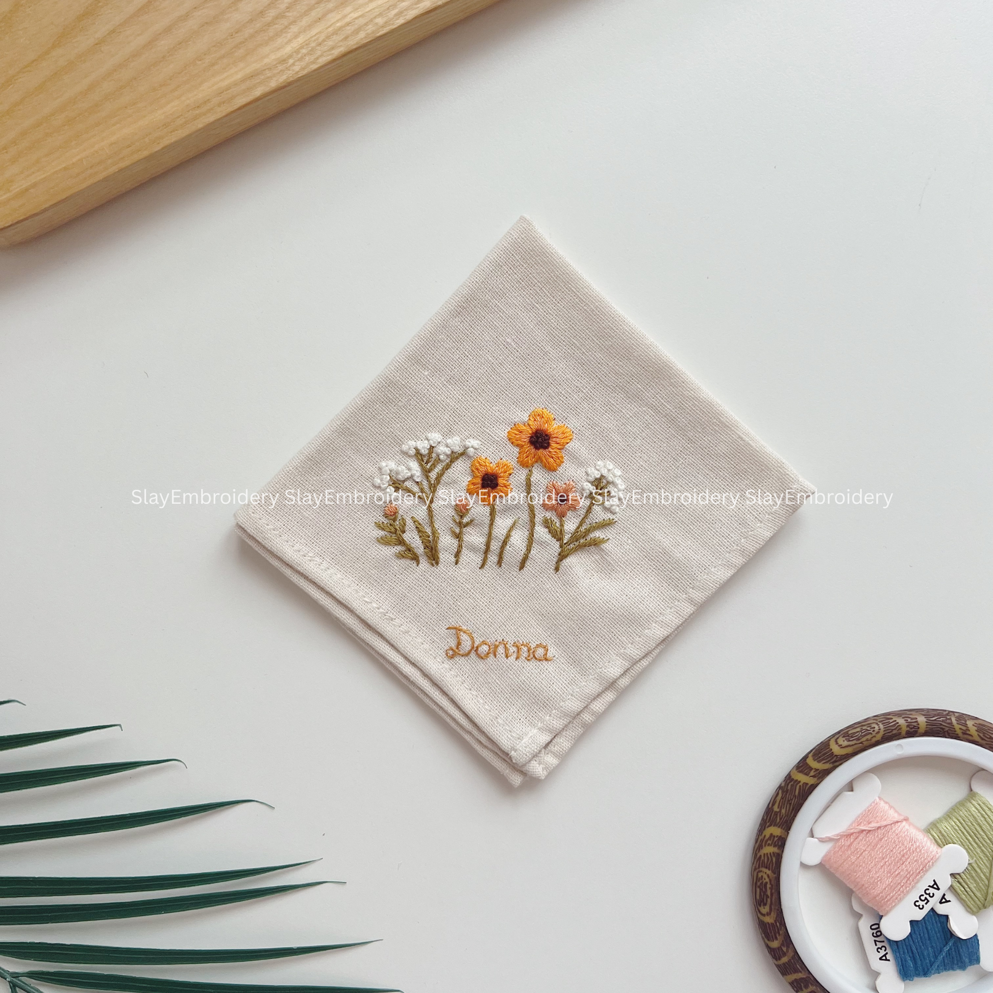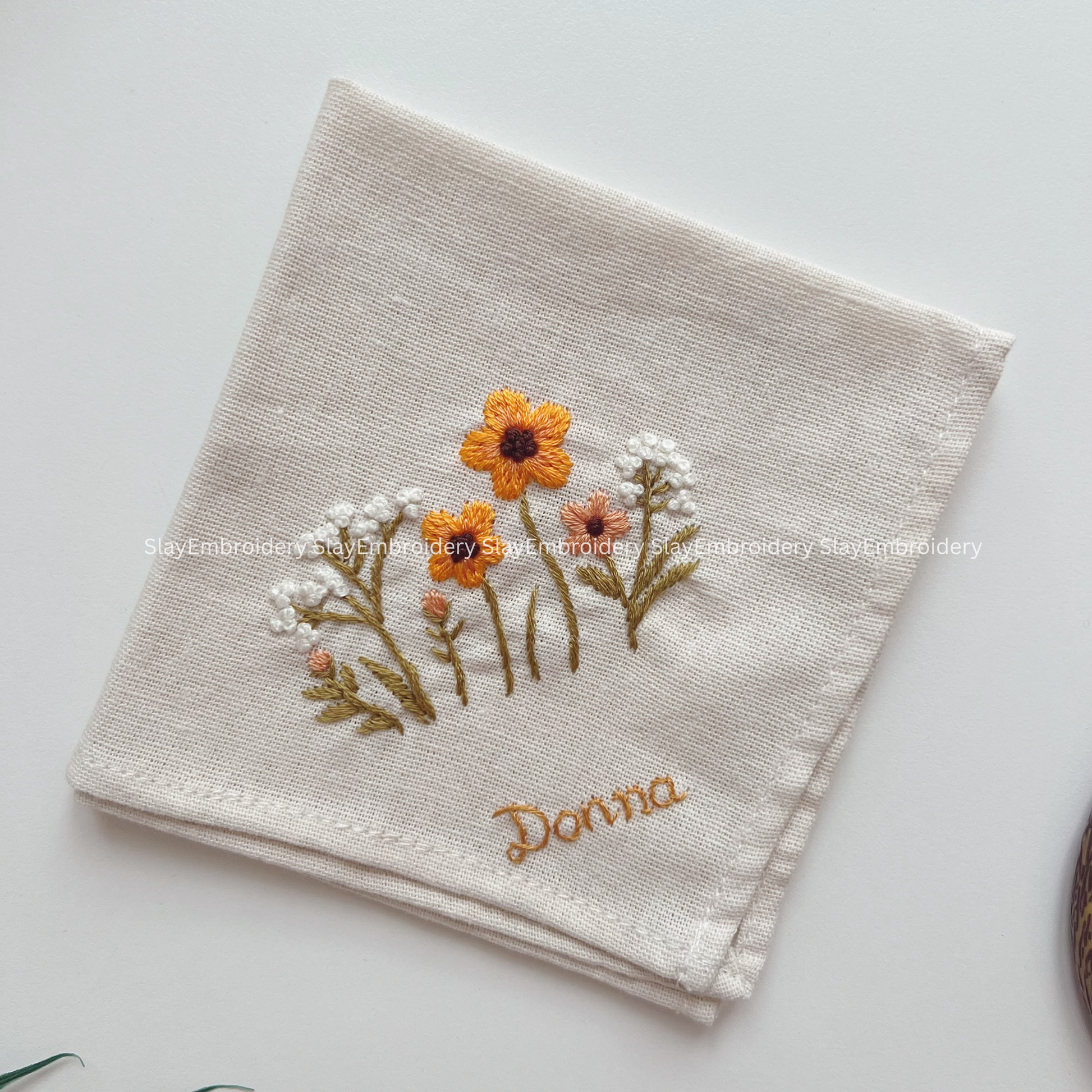 Daisy Sunshine Wedding Handkerchief, Custom Embroidered Handkerchief