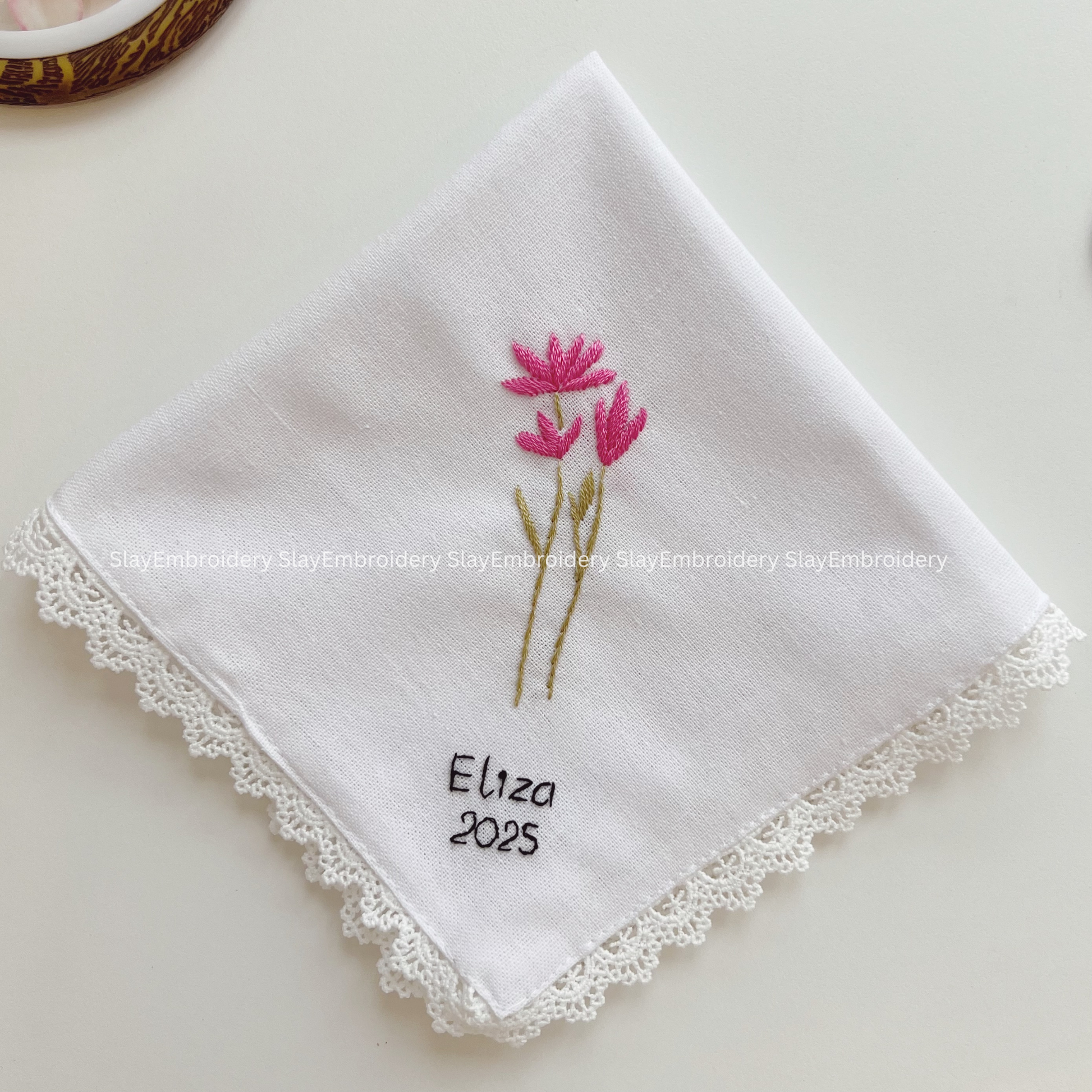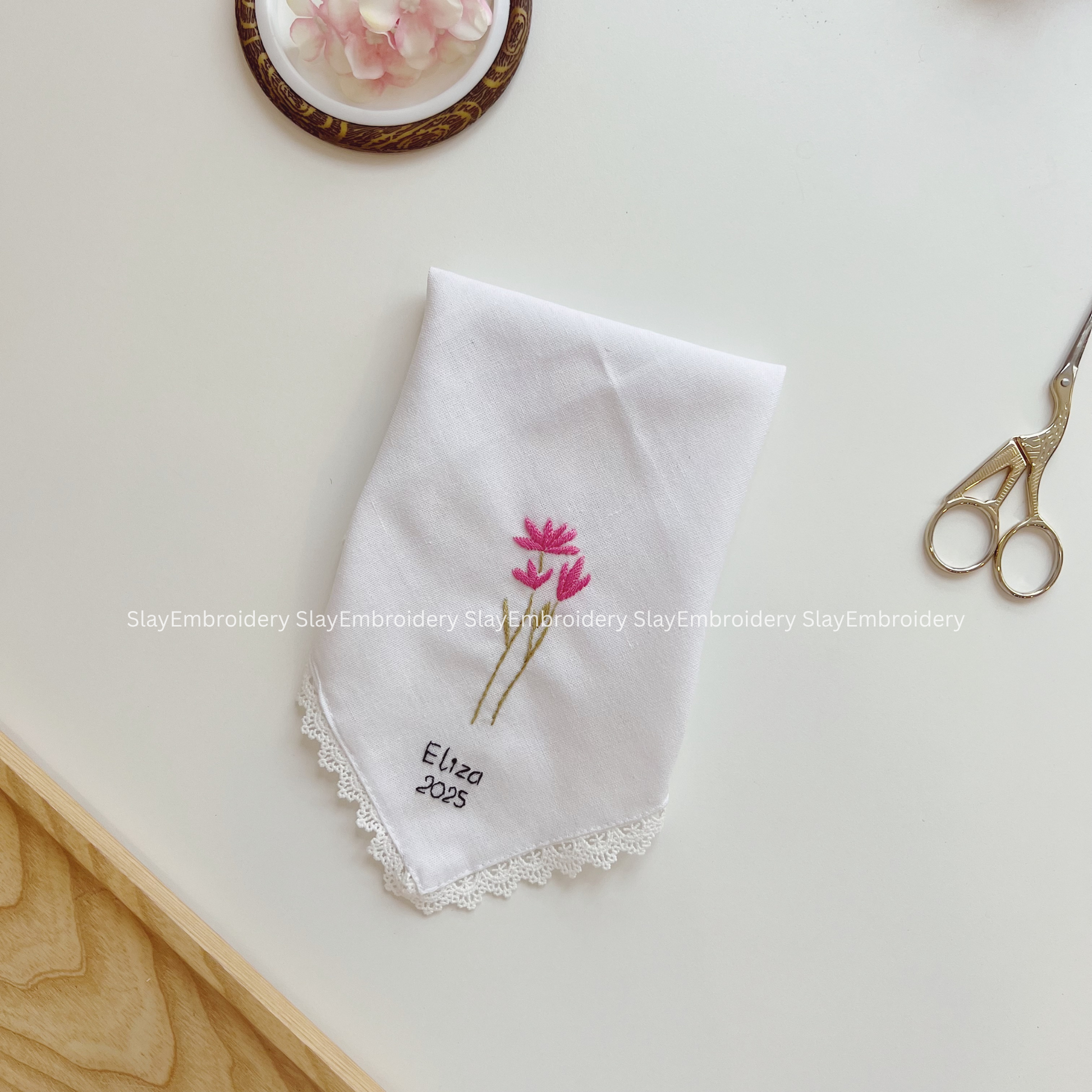 Pink Flame Wedding Handkerchief, Custom Embroidered Handkerchief, Linen Handkerchiefs