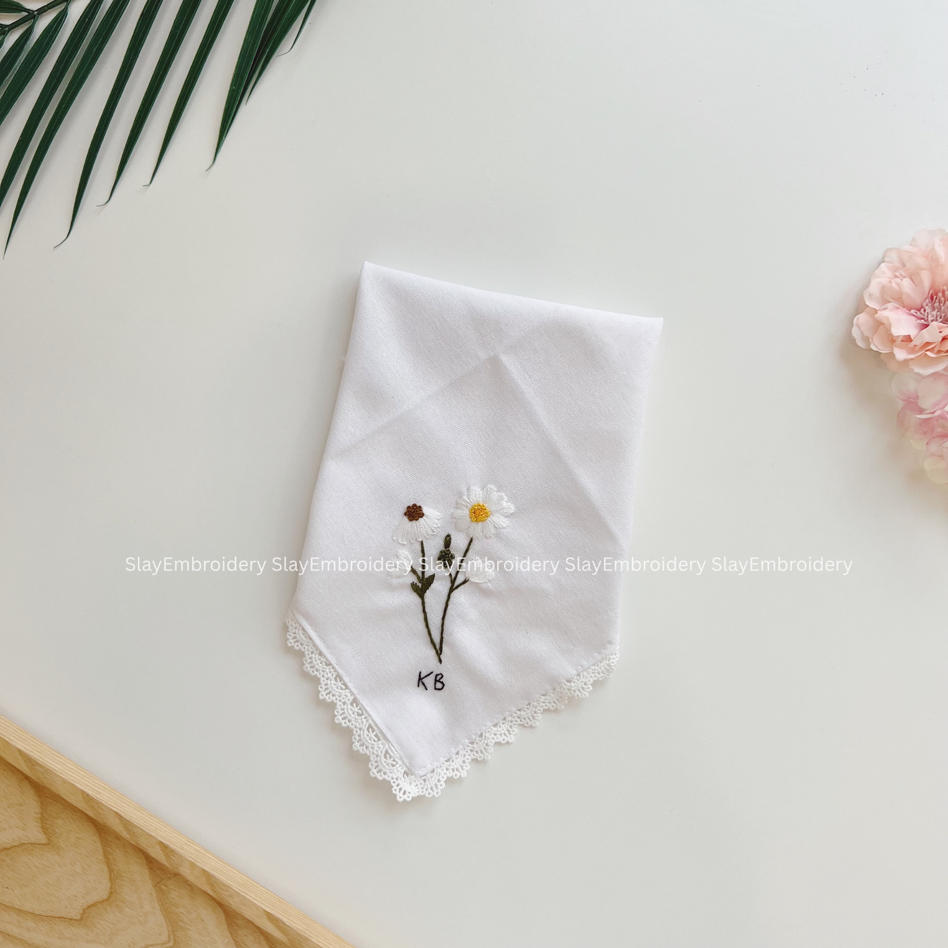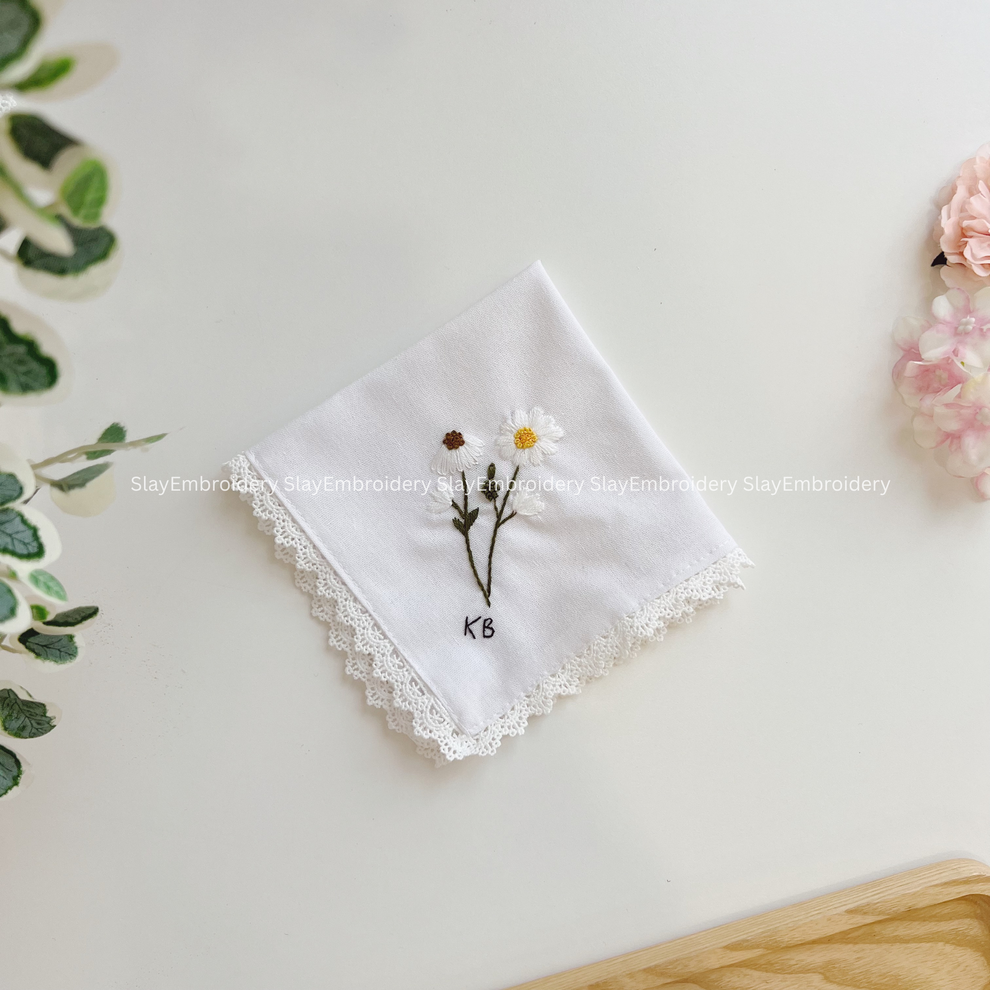 Sunny Daisy Wedding Handkerchief, Custom Embroidered Handkerchief, Linen Handkerchiefs