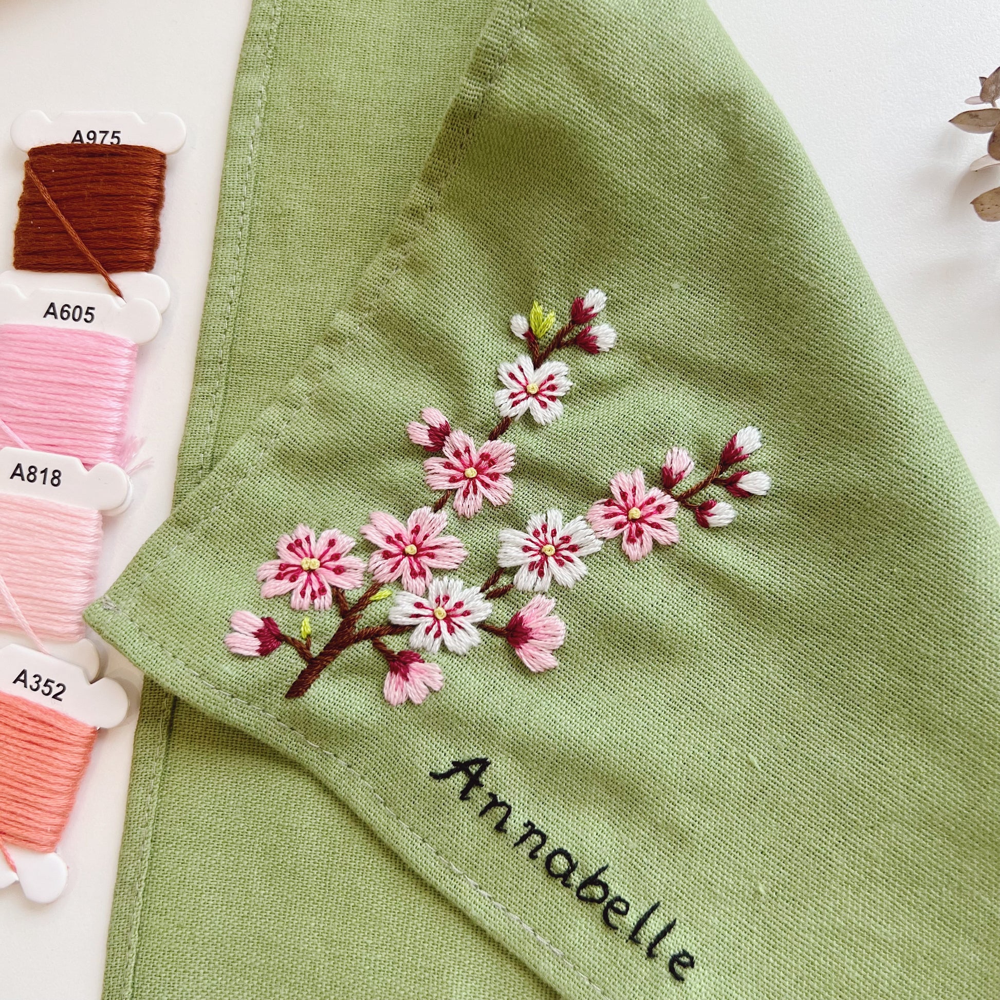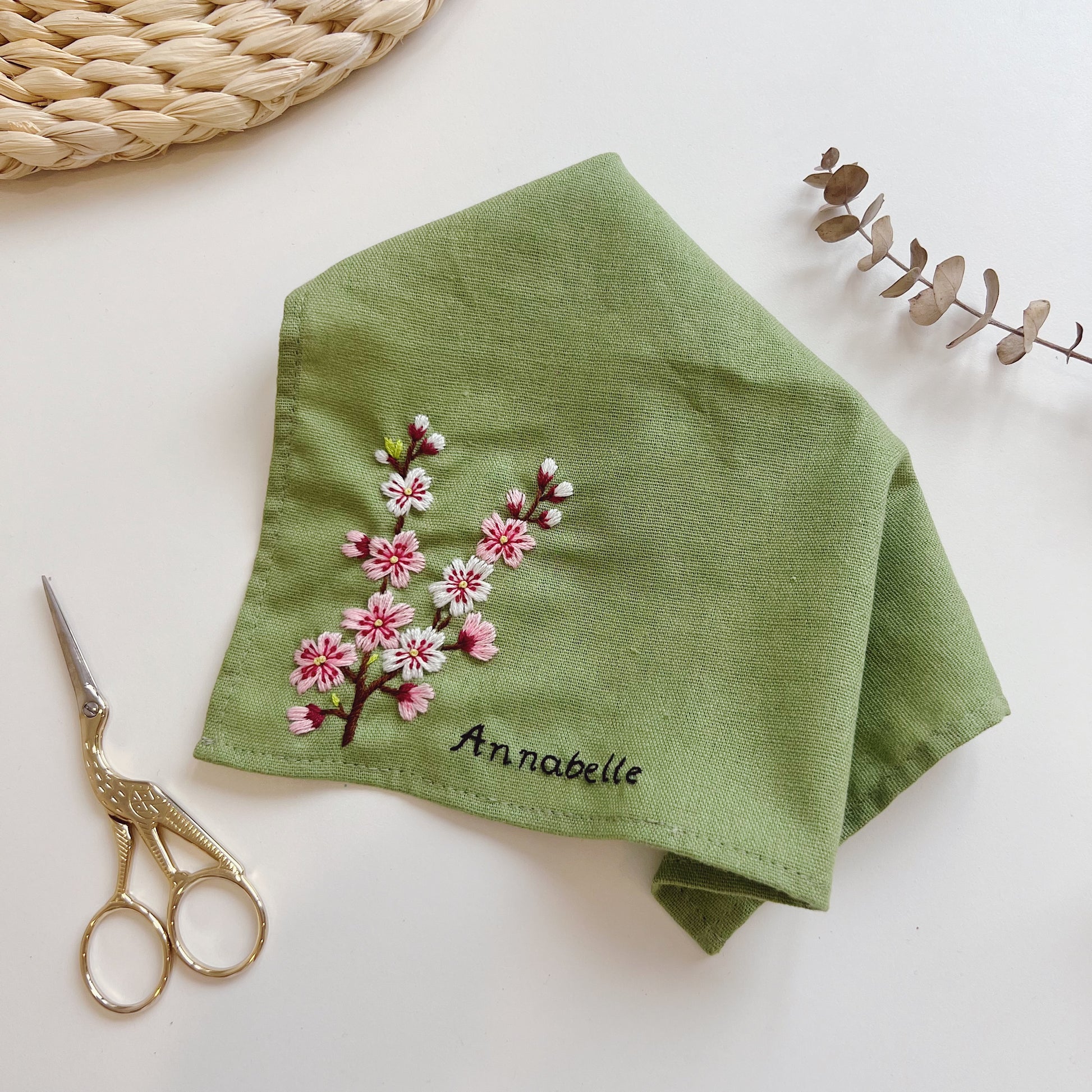 Cherry Blossoms Flowers Wedding Handkerchief, Custom Embroidered Handkerchief