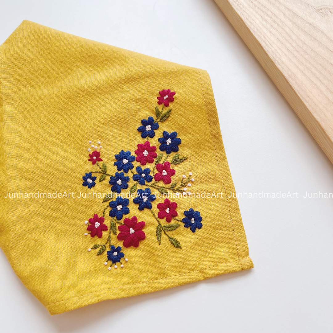 Colorful Wildflowers Wedding Handkerchief, Custom Embroidered Handkerchief