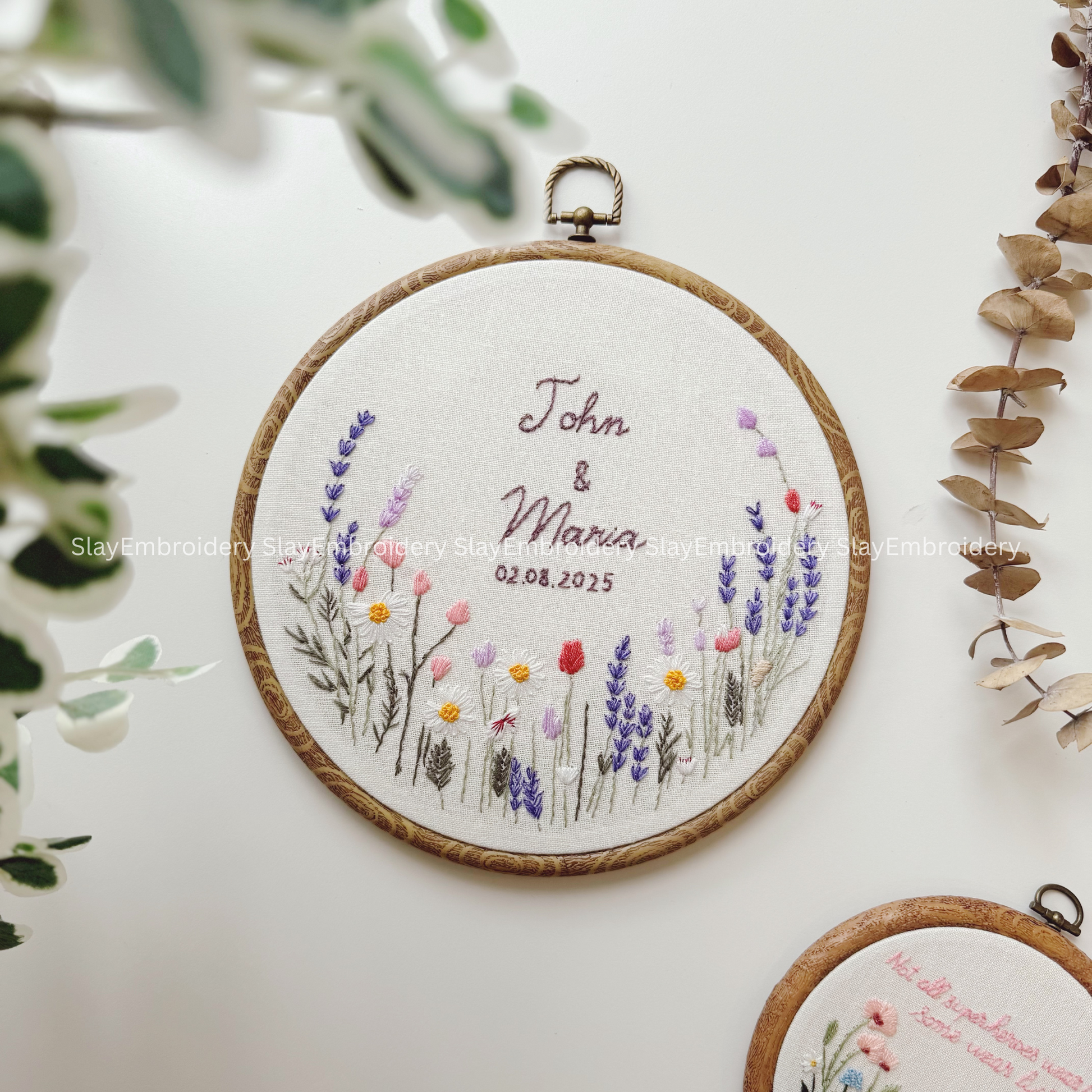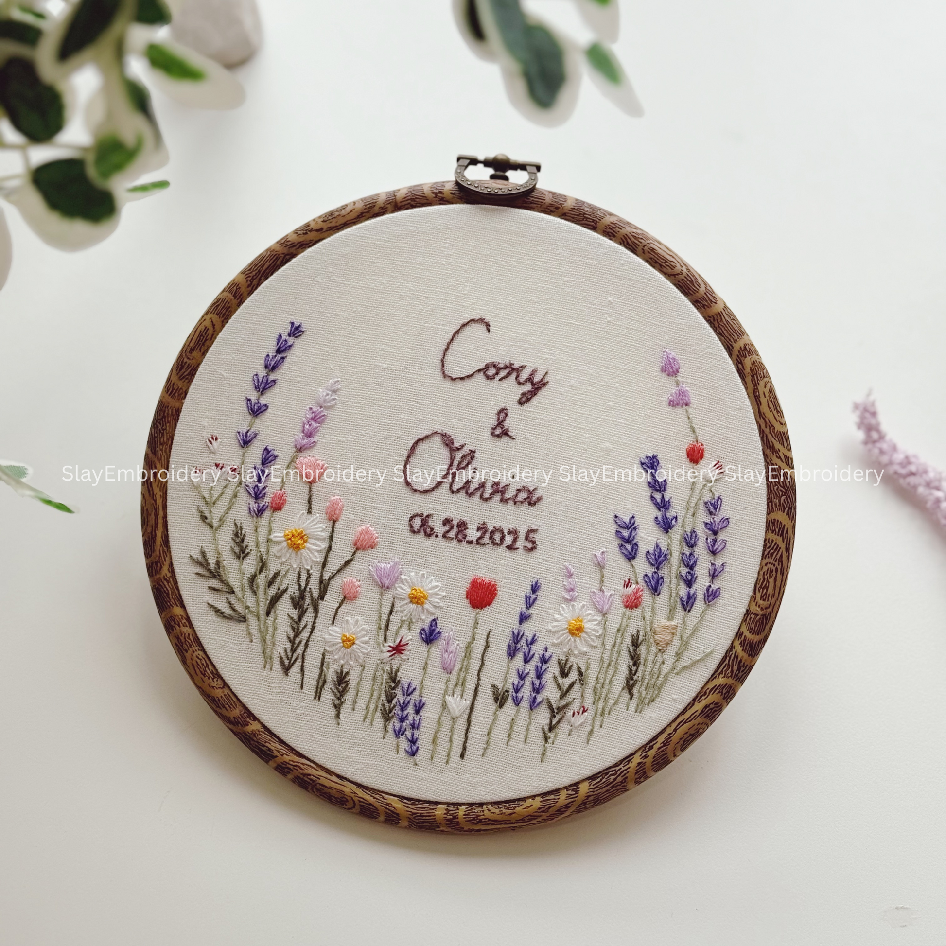 Custom Embroidered Blooming Garden Wedding Hoop Custom Floral Wedding Hoops Wedding Gift
