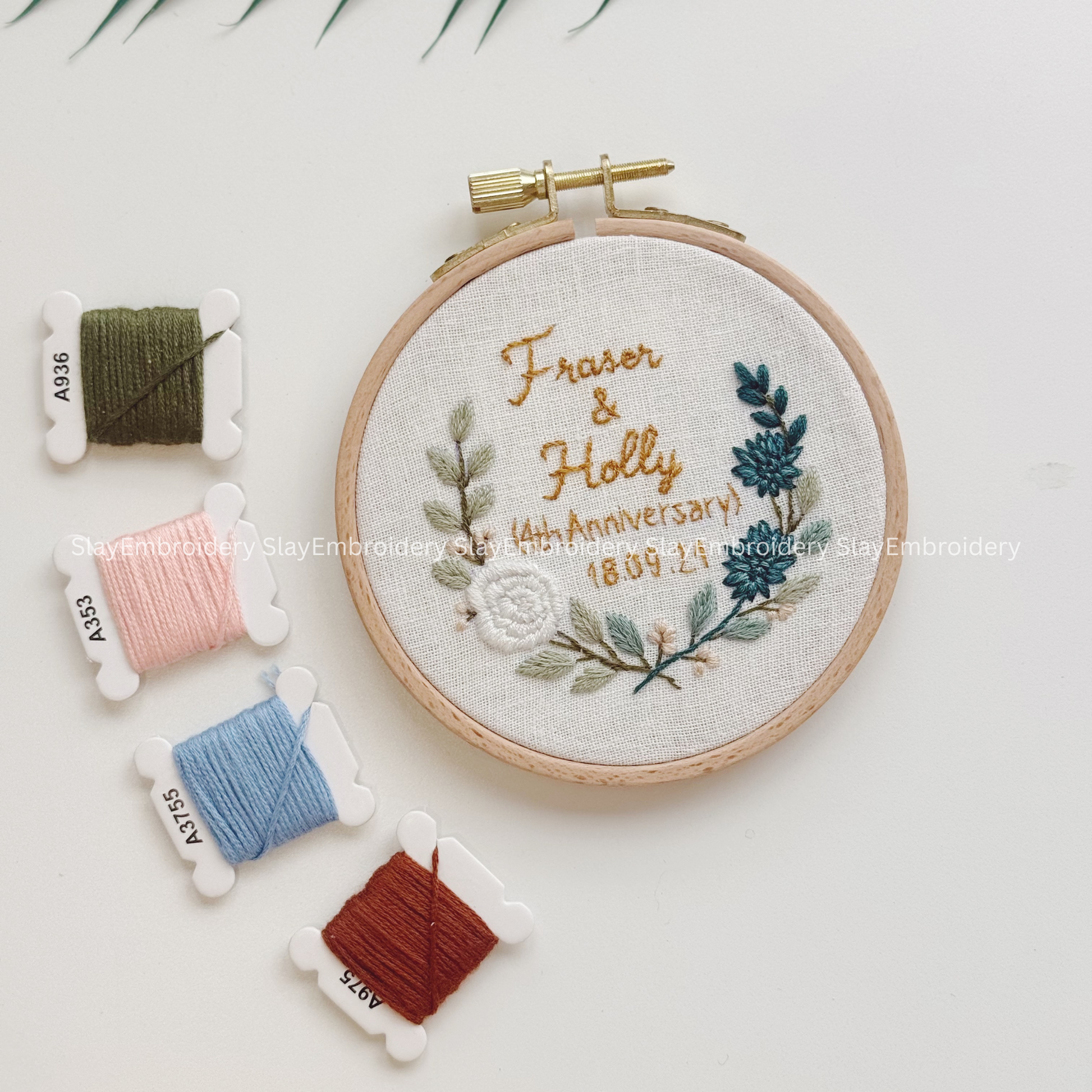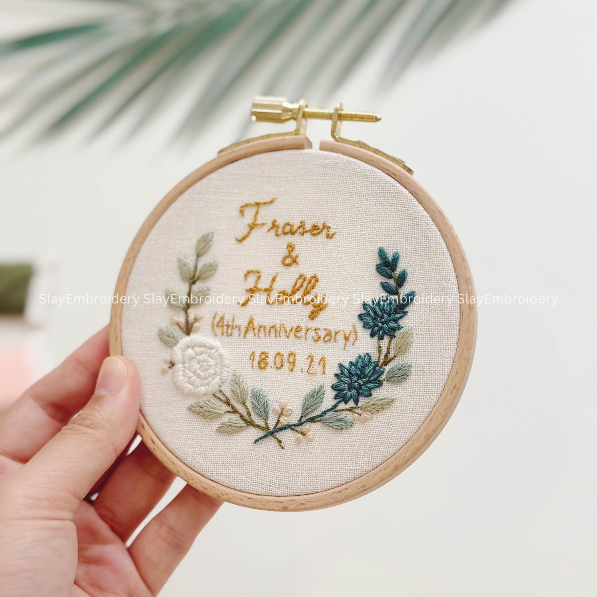 Approval: You receive a photo preview before we ship your hoop. Because every hoop is stitched by hand, no two are ever alike — making this a truly meaningful keepsake.