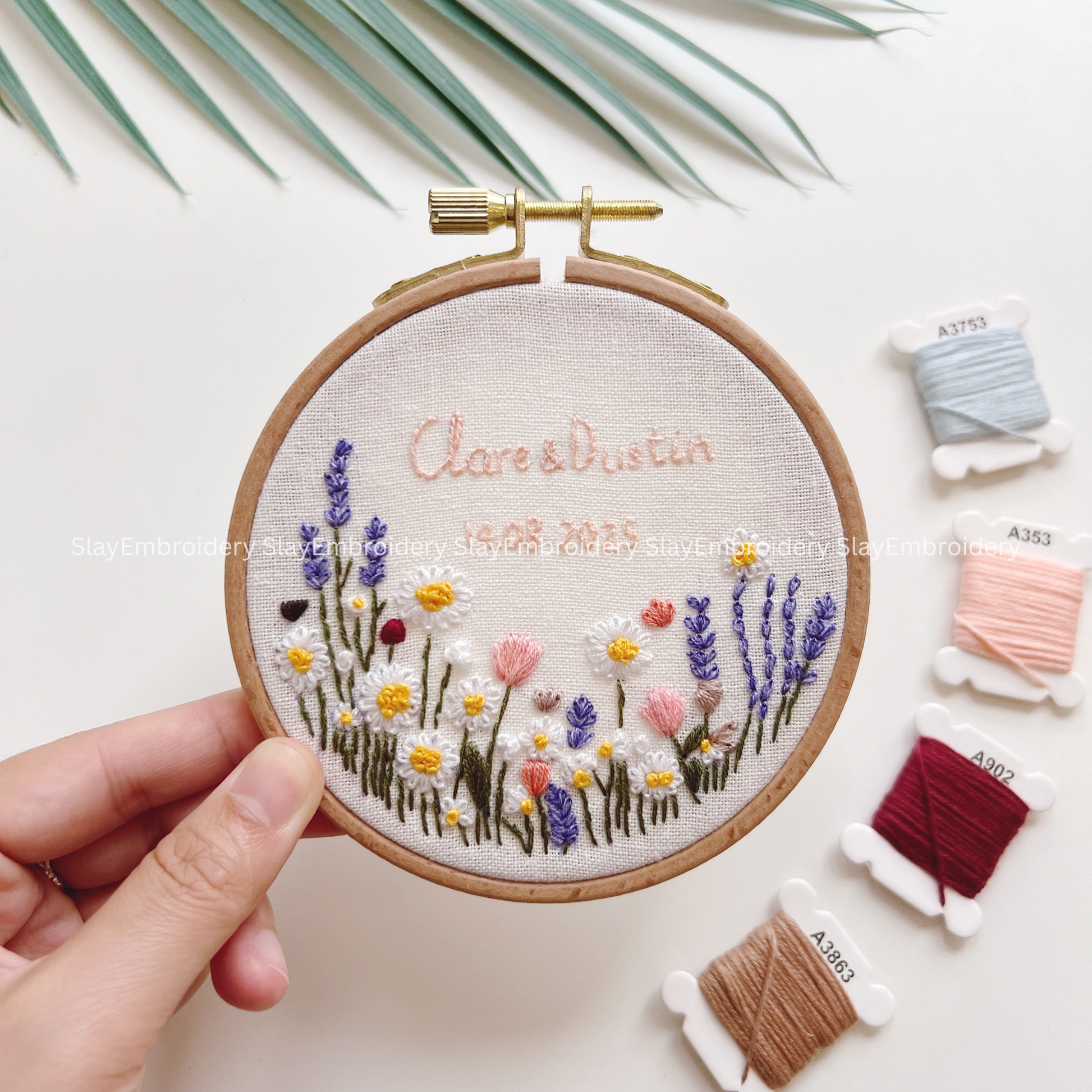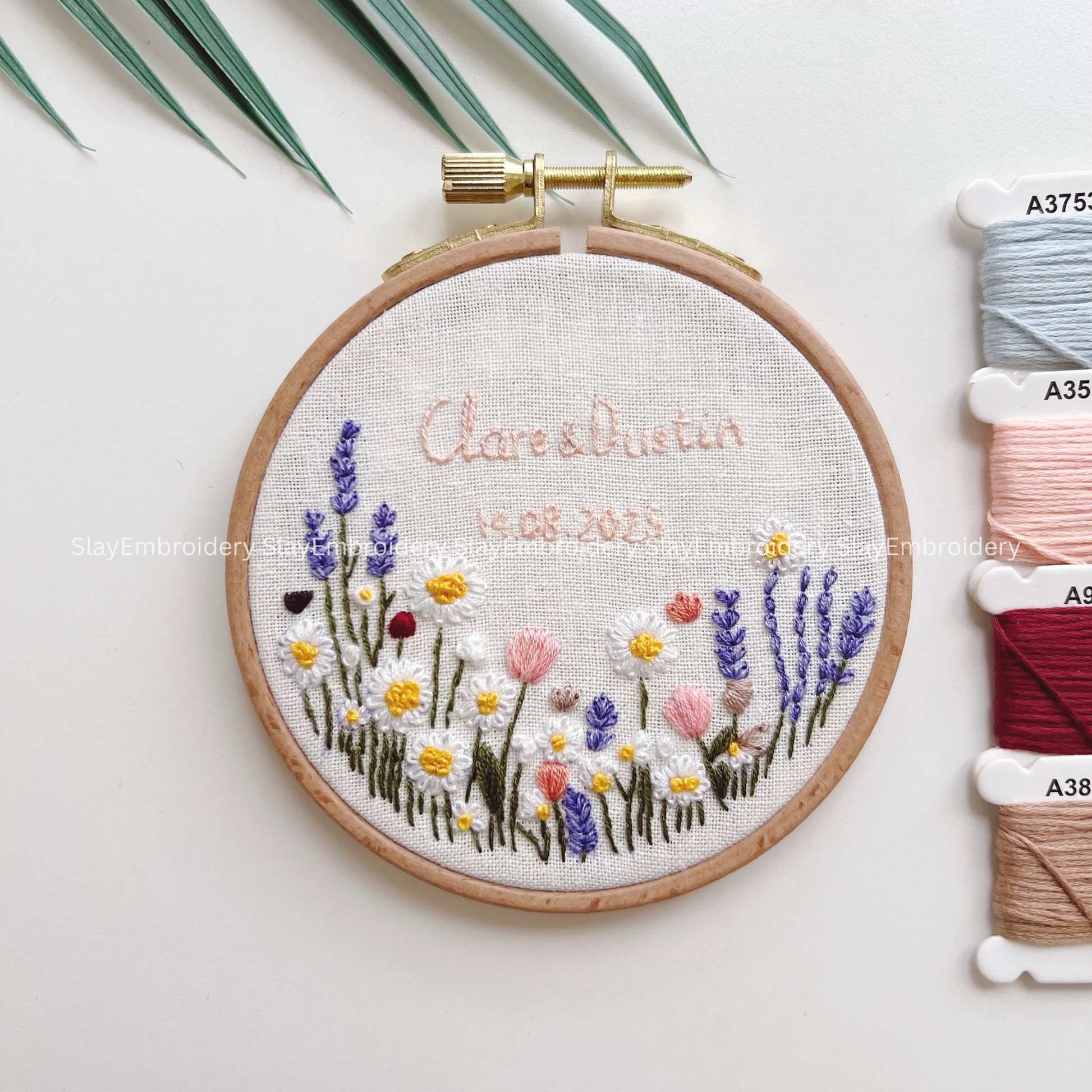 Custom Embroidered Lavenders & Daisies Wedding Hoop Custom Floral Wedding Hoops Wedding Gift