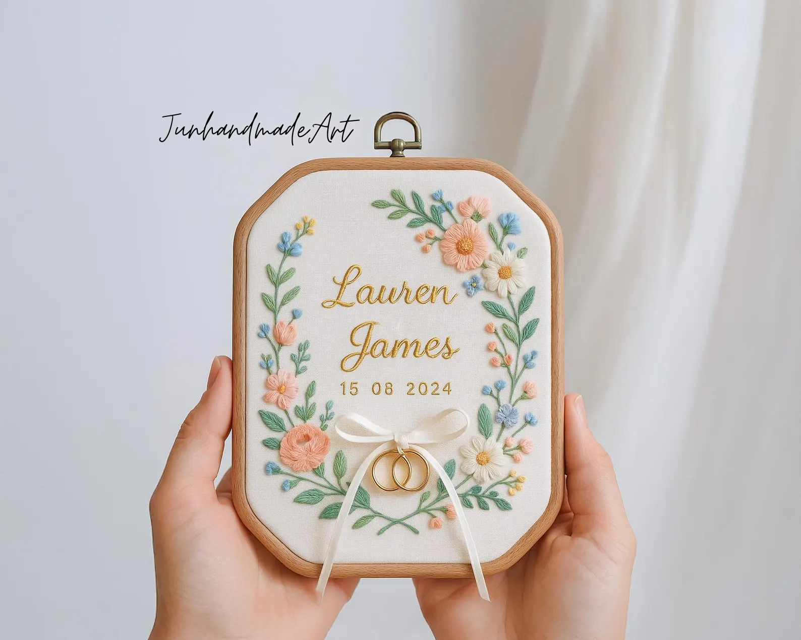 Custom Wedding Embroidery Hoop with Flowers and Names – Personalized Hand Embroidered Wildflowers Gift for Couple, Wedding Gift