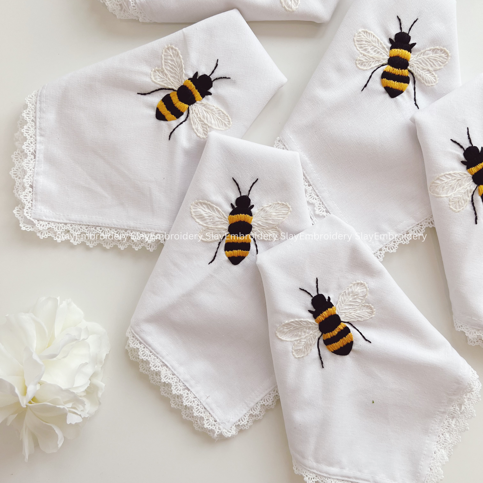 Honeybee Embroidered Linen Napkins – Elegant Floral Napkin – Rustic Wedding Table Decor Housewarming Gift, for Her or Hostess
