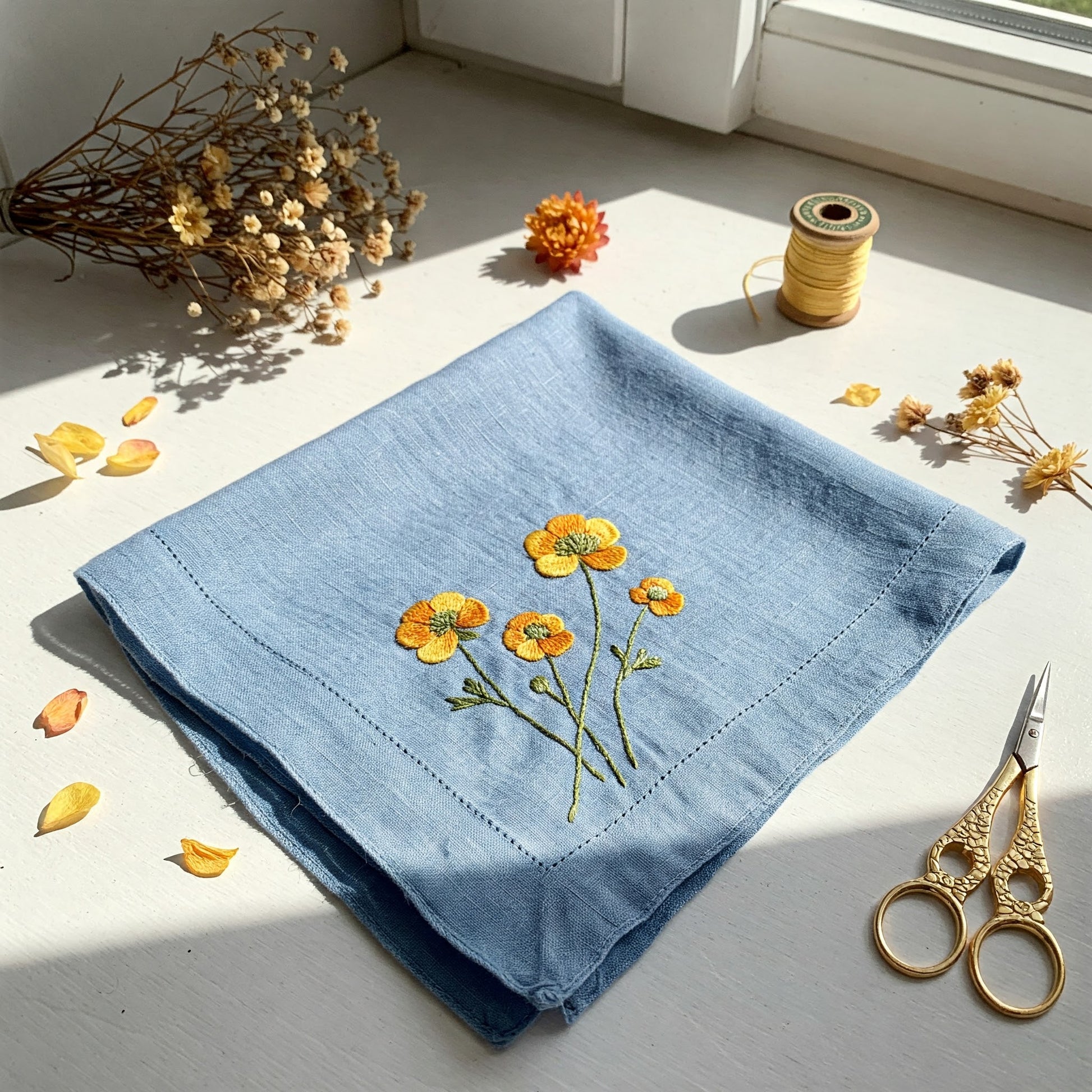 Poppy Dusk Wedding Handkerchief, Custom Embroidered Handkerchief