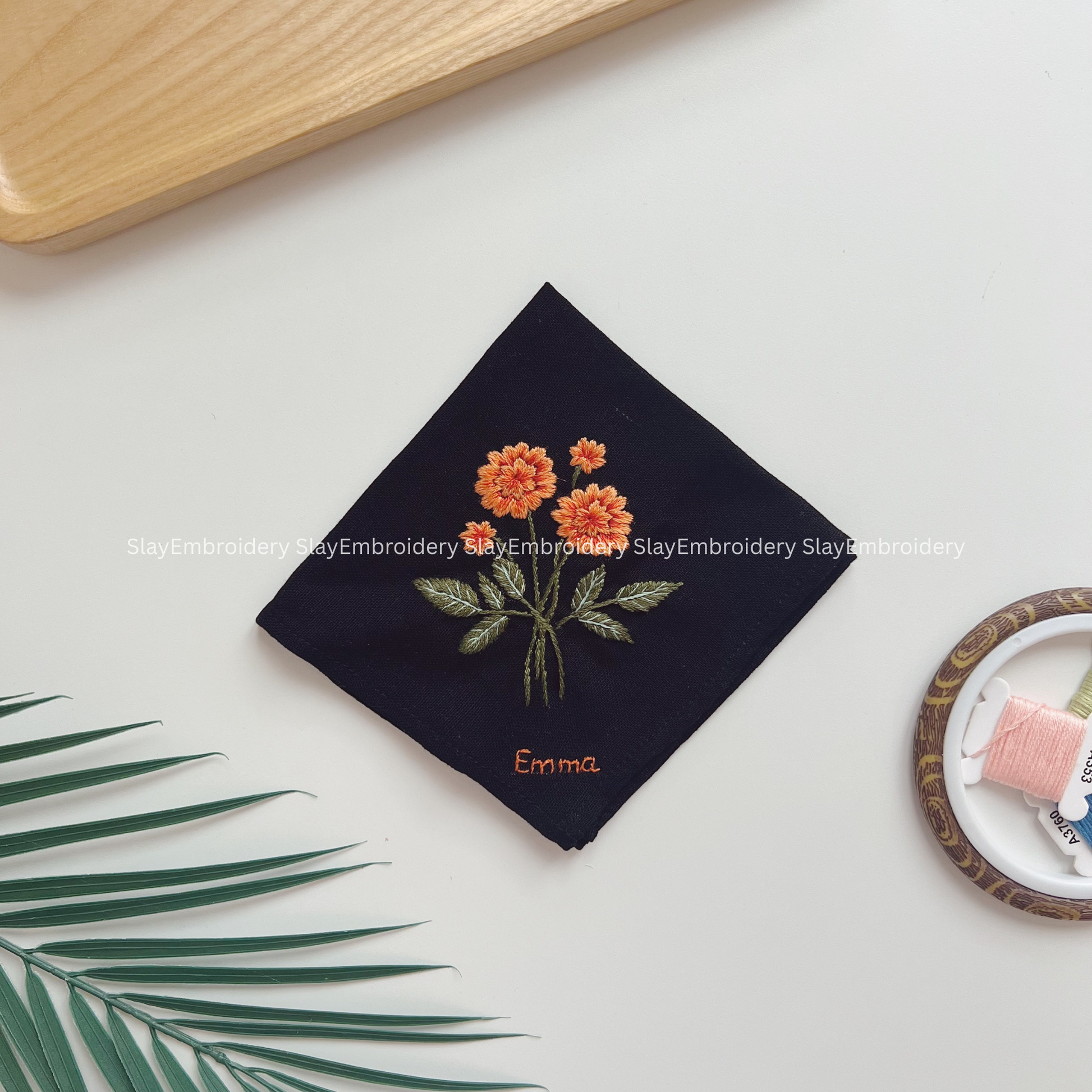 Dahlias Dream Wedding Handkerchief, Custom Embroidered Handkerchief