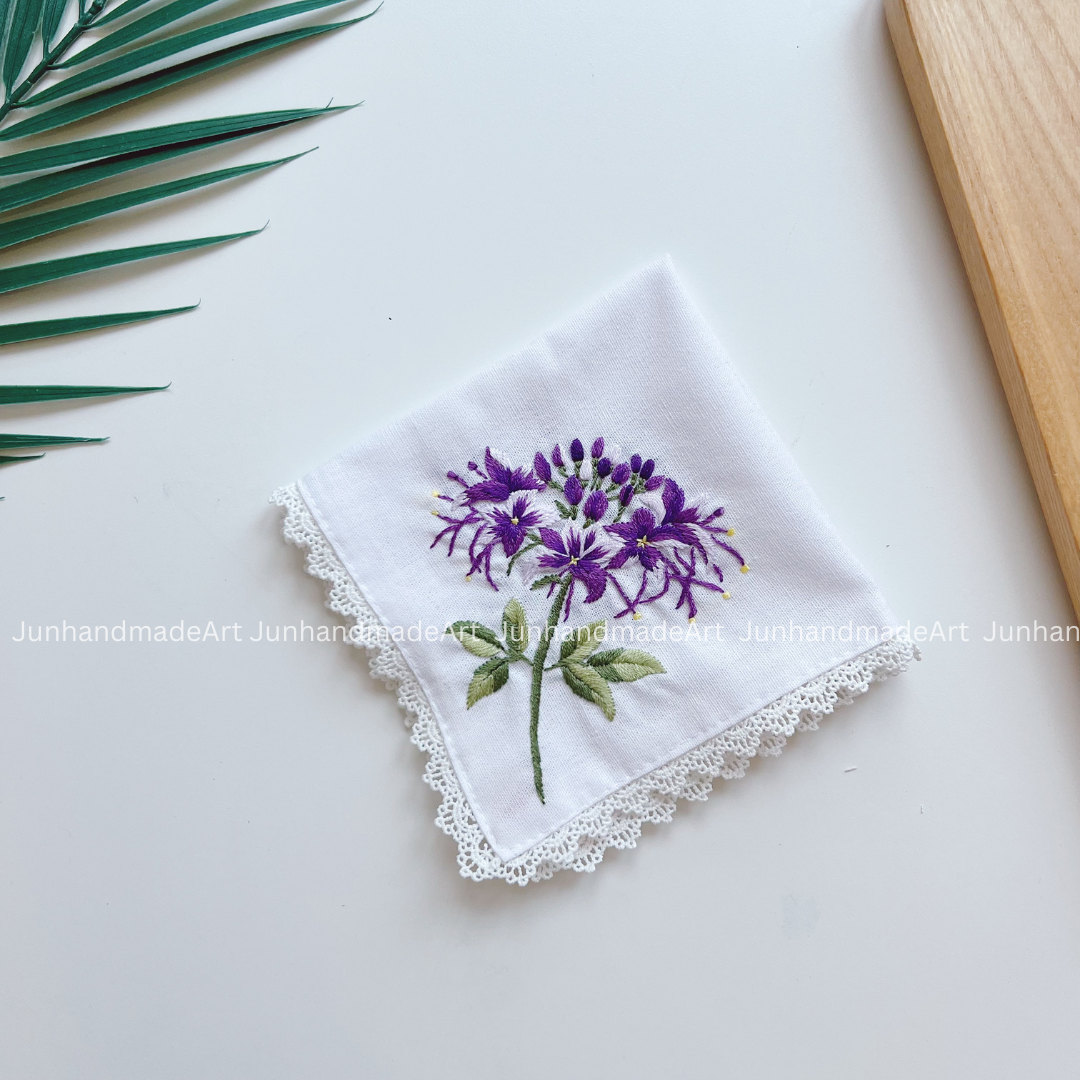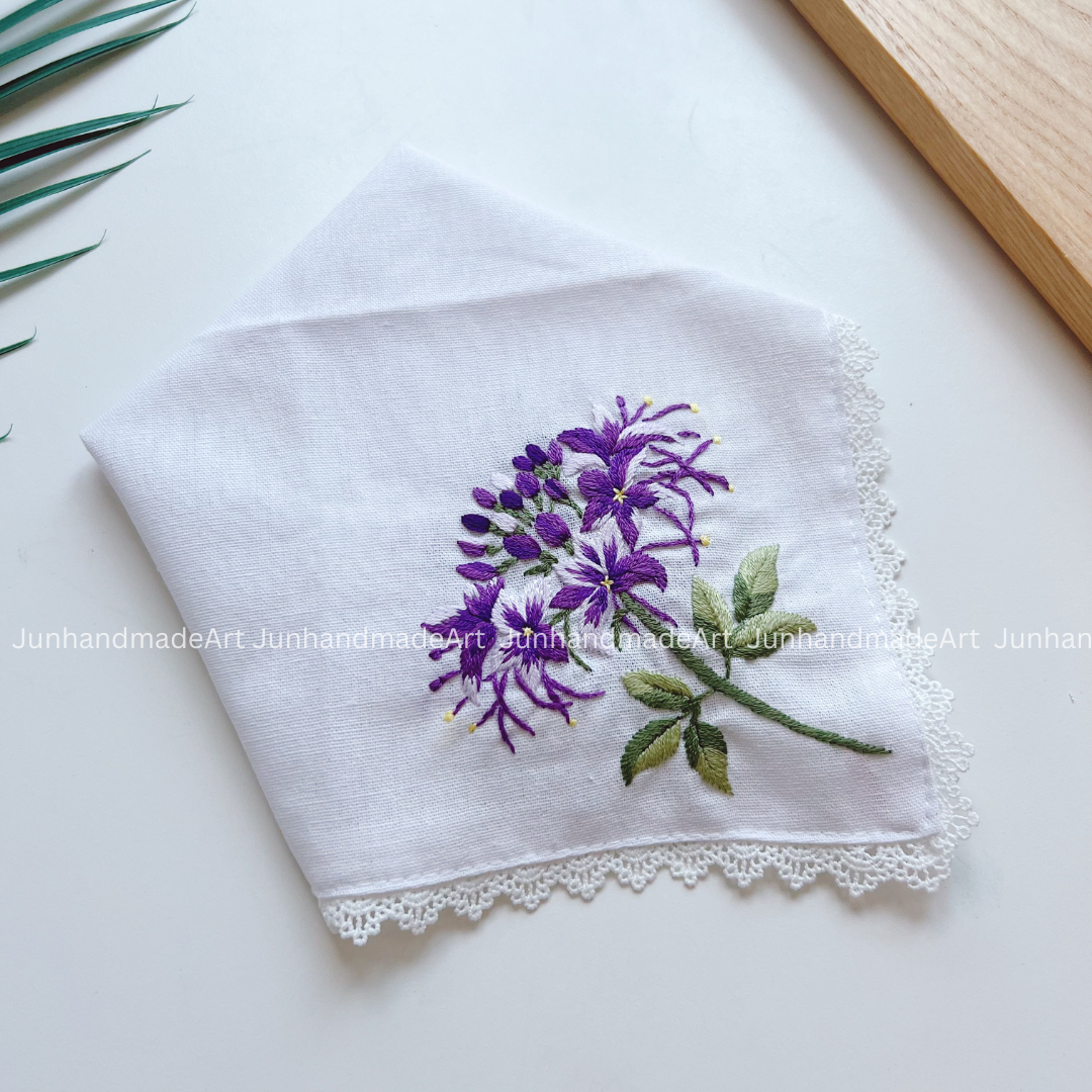 Dreamy Purple Handkerchief, Custom Embroidered Handkerchief, Linen Handkerchiefs