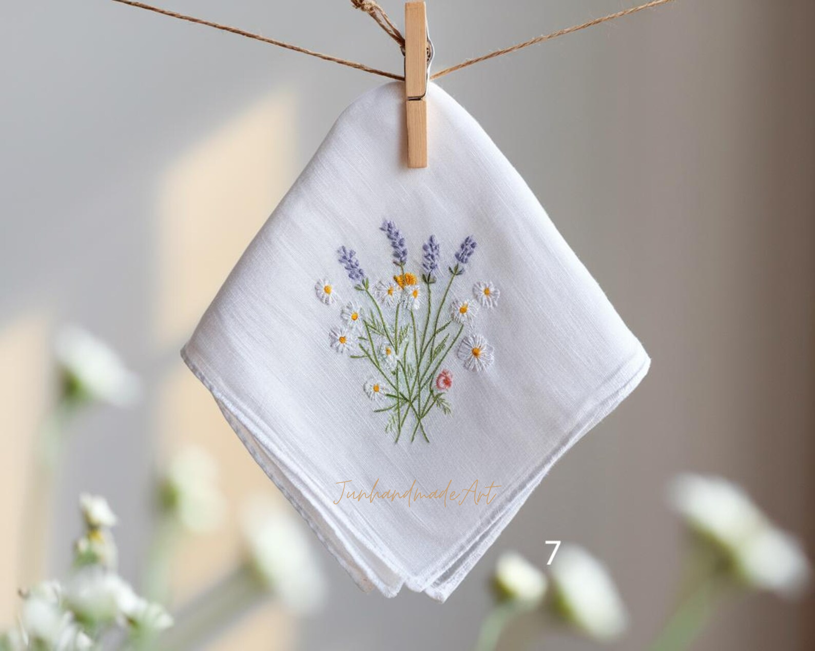 Embroidered Wedding Handkerchief – Custom Floral Hankie for Bride, Bridal Gift, Personalized with Name & Date, Gift for Bride