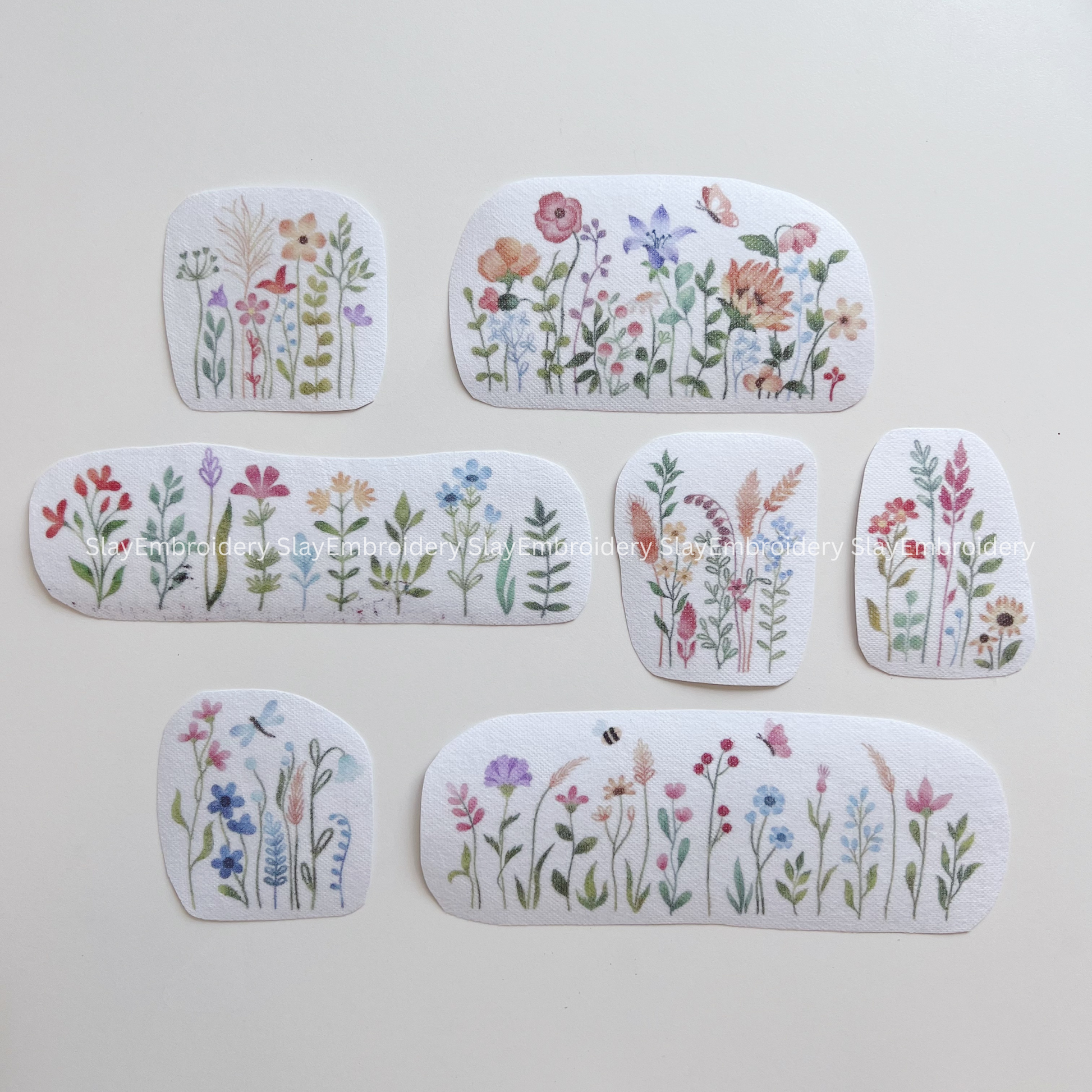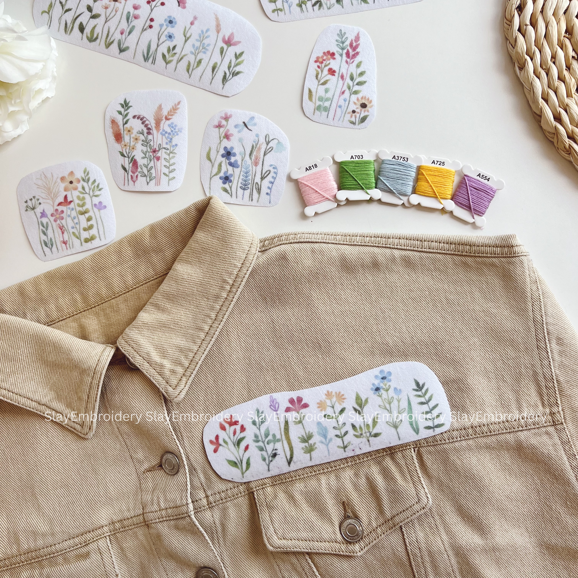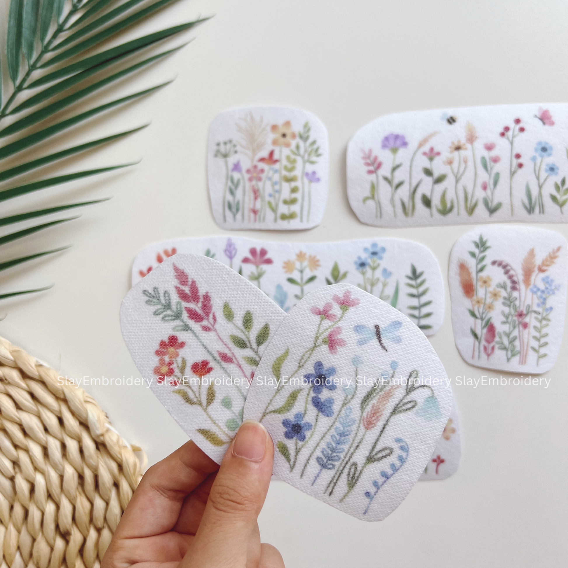 Floral Meadow Embroidery Pattern For Beginner Easy To Use Stick and Stitch