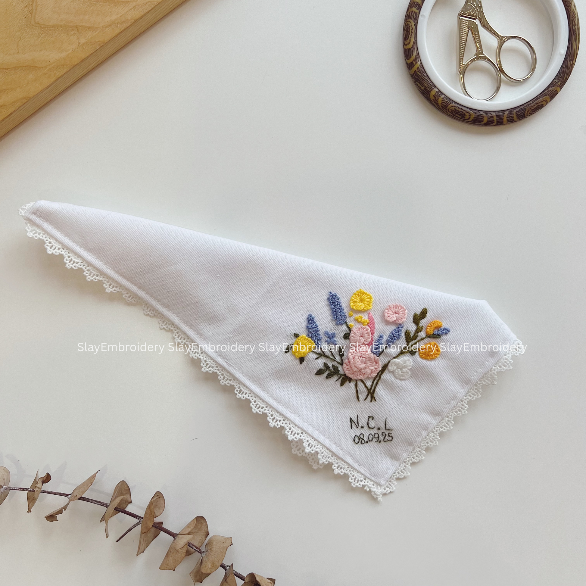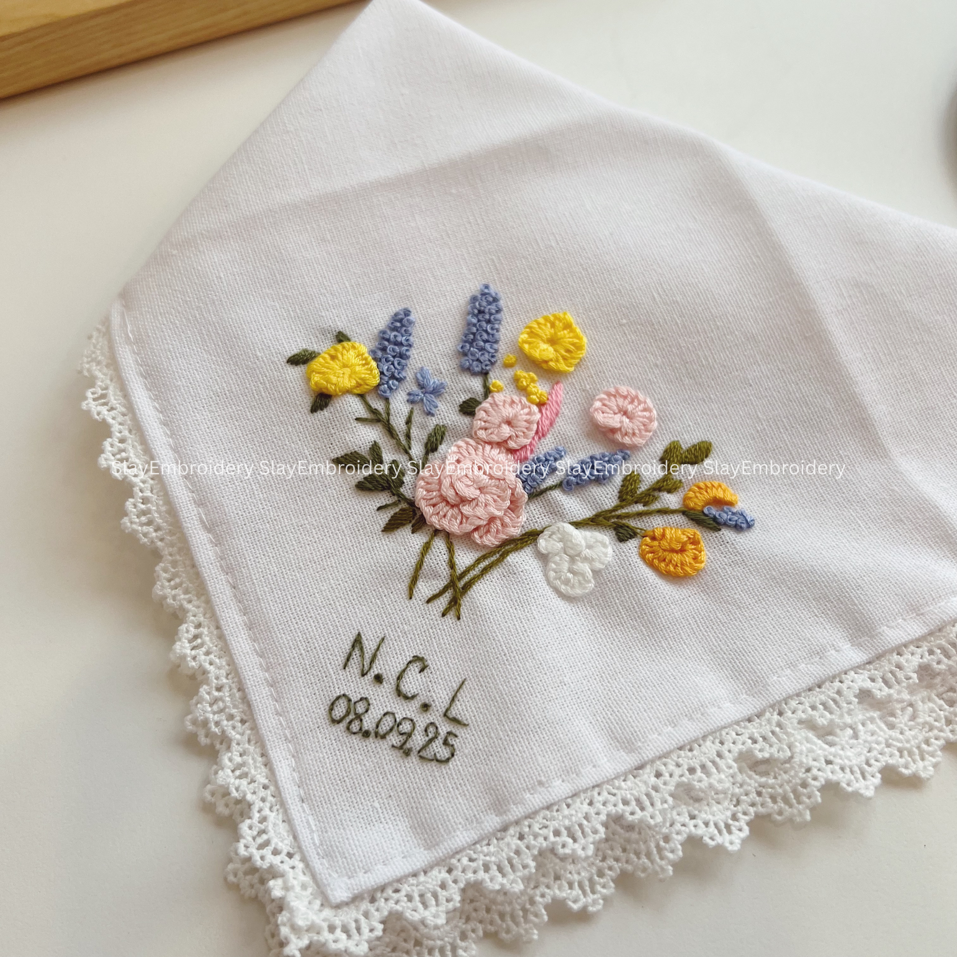 Sunlit Blooms Wedding Handkerchief, Custom Embroidered Handkerchief, Linen Handkerchiefs