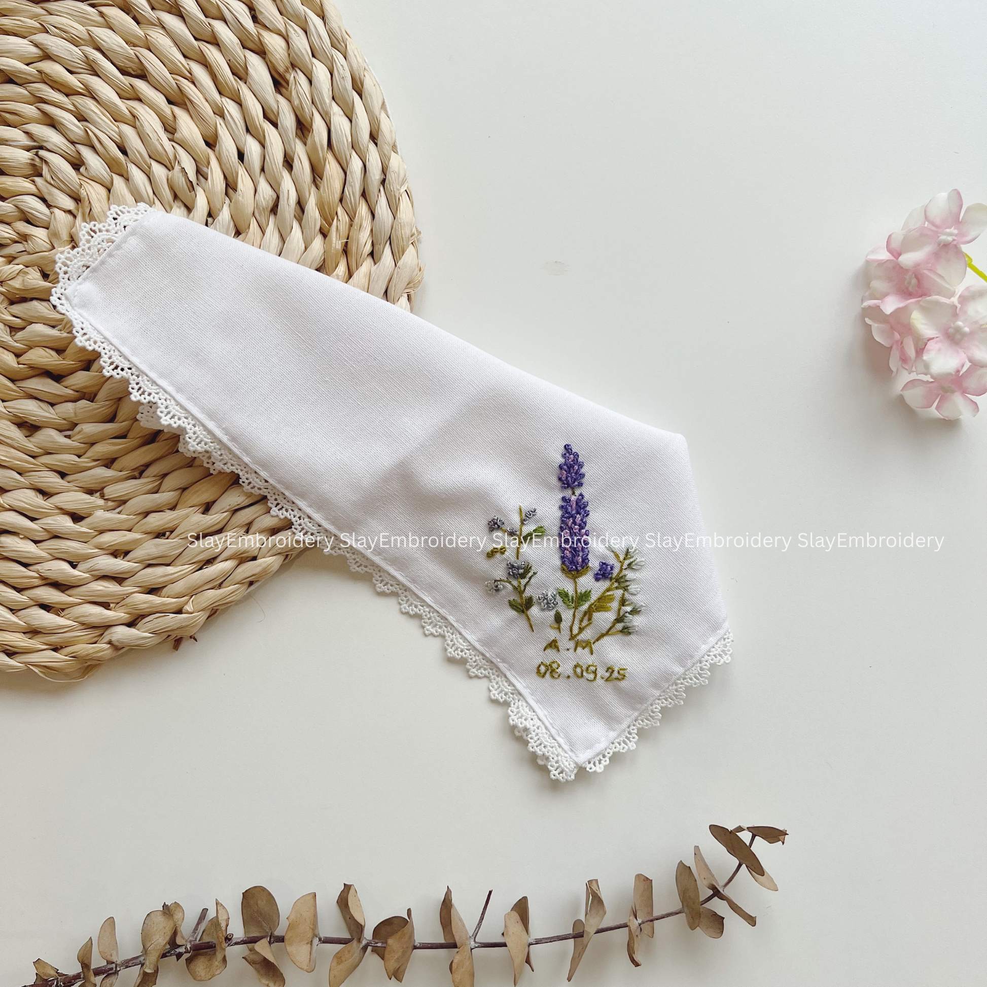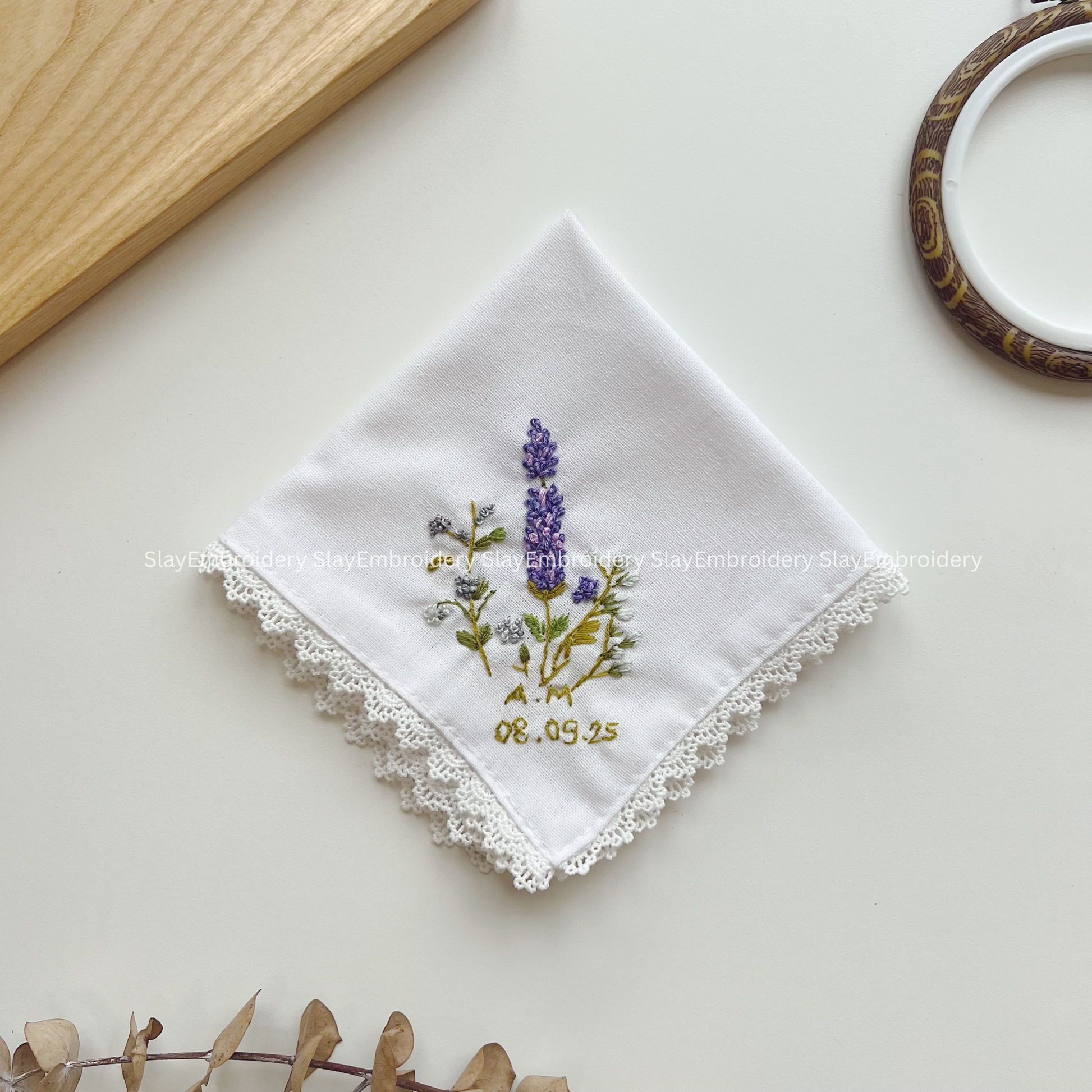 Scent of Lavender Wedding Handkerchief, Custom Embroidered Handkerchief, Linen Handkerchiefs