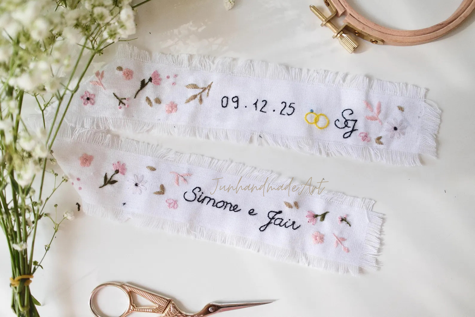 Handmade Embroidered Wedding Ribbon 🌸