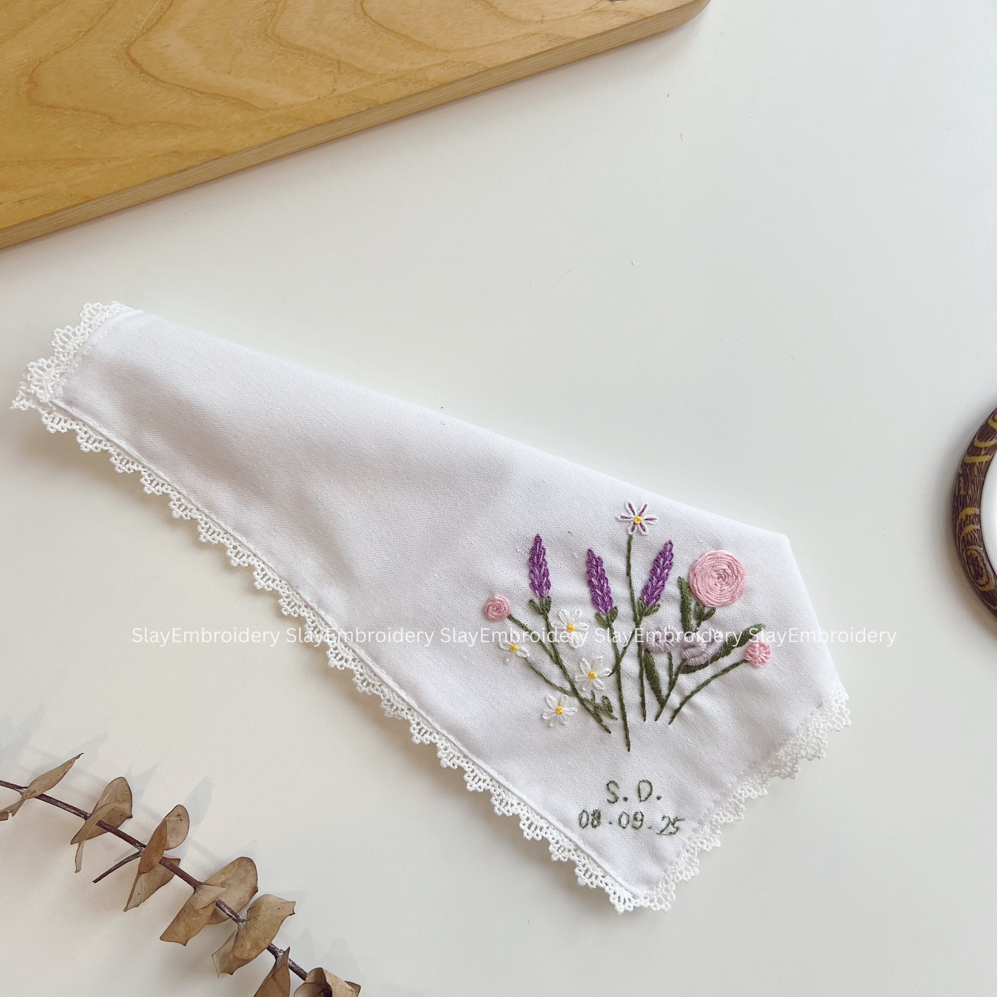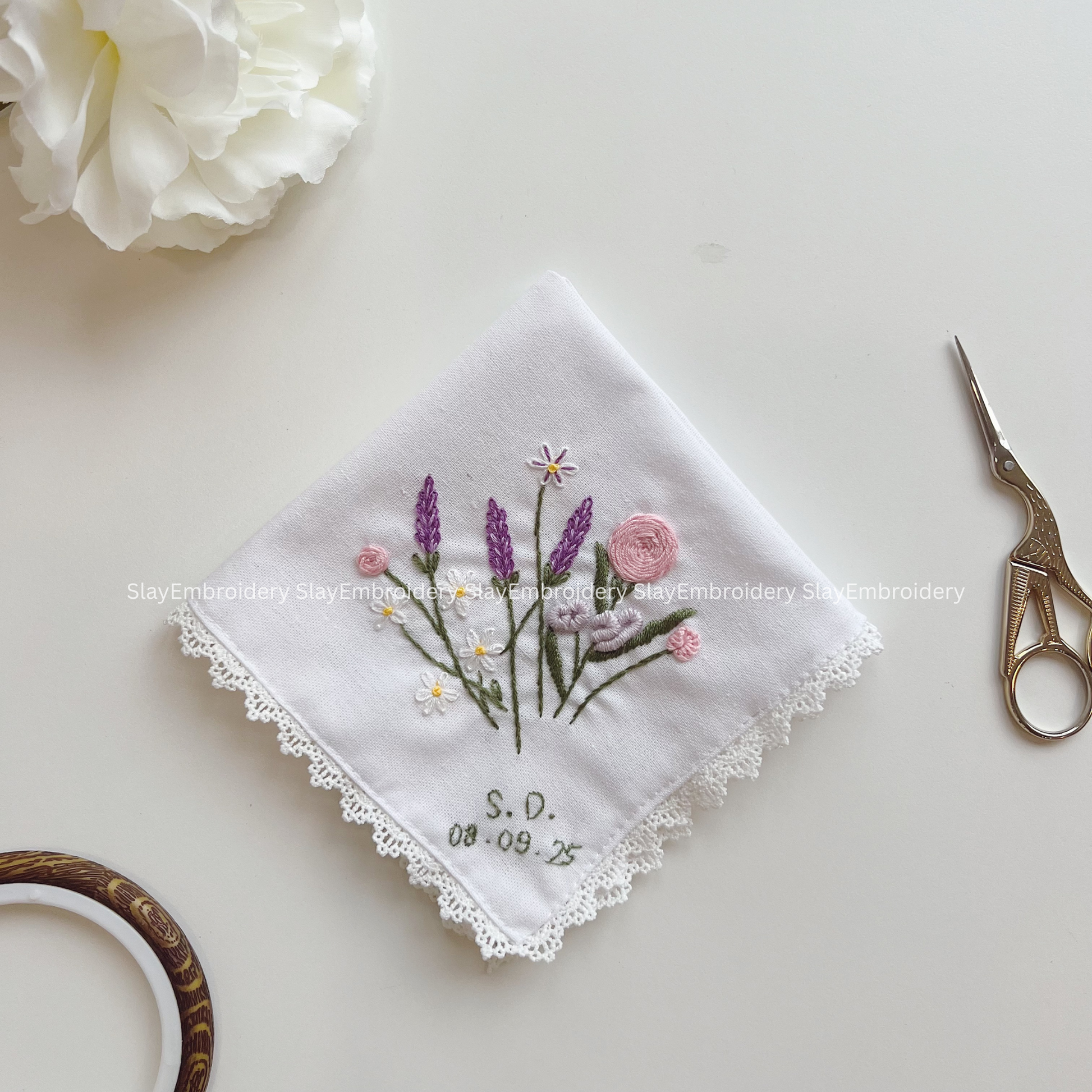 Cottage Garden Wedding Handkerchief, Custom Embroidered Handkerchief, Linen Handkerchiefs