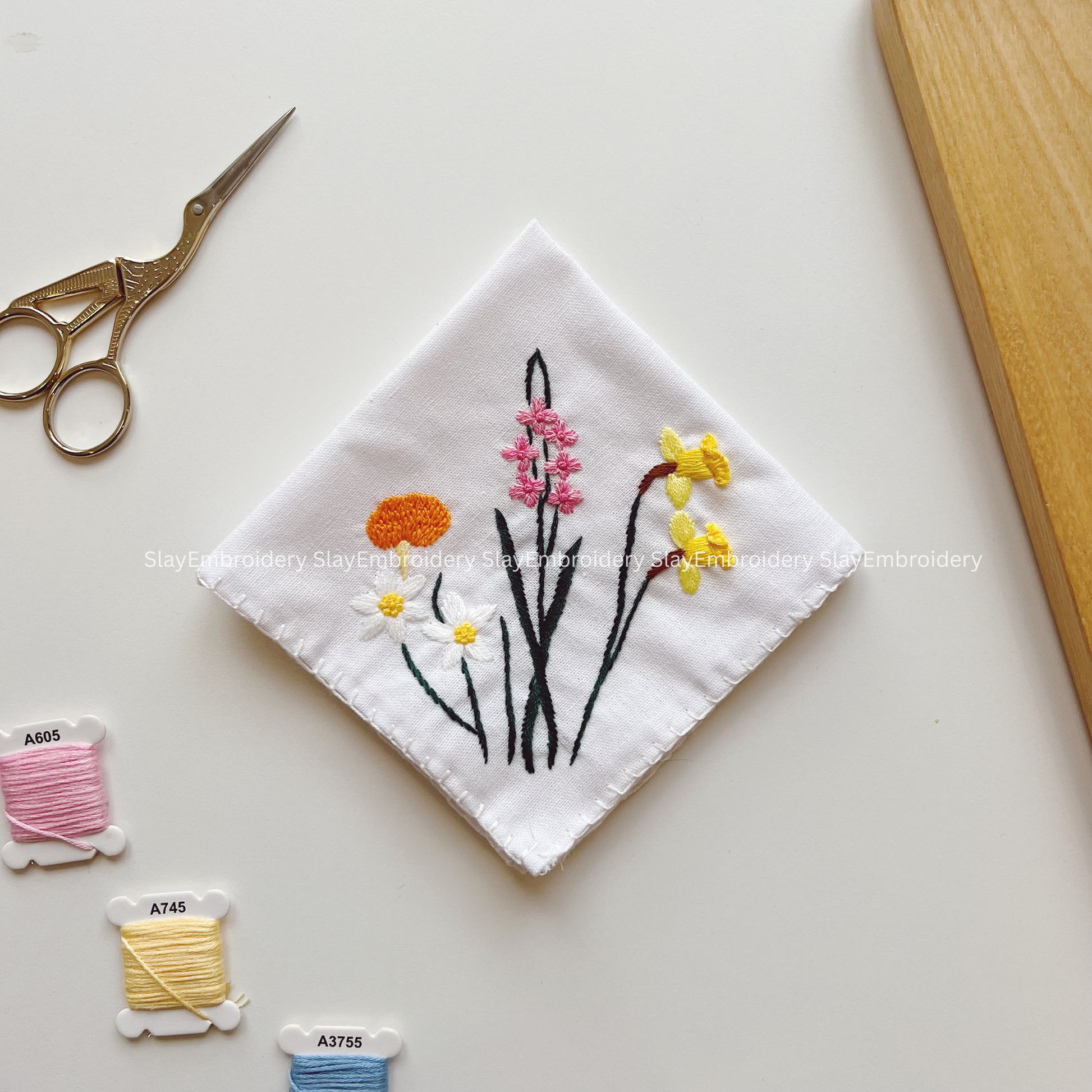 Joyful Wildflowers Wedding Handkerchief, Custom Embroidered Handkerchief, Linen Handkerchiefs