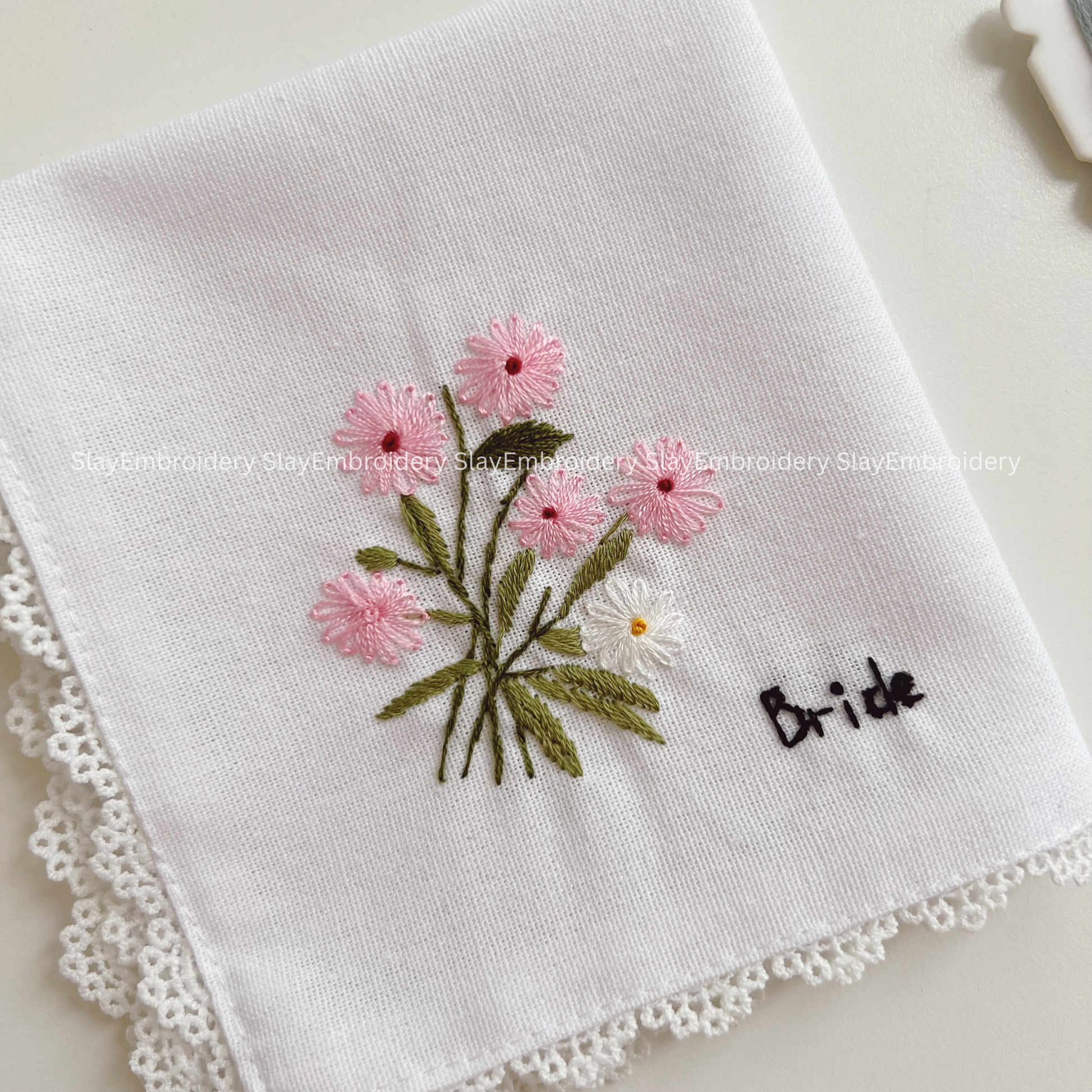 Rosy Symphony & White Note Wedding Handkerchief, Custom Embroidered Handkerchief, Linen Handkerchiefs
