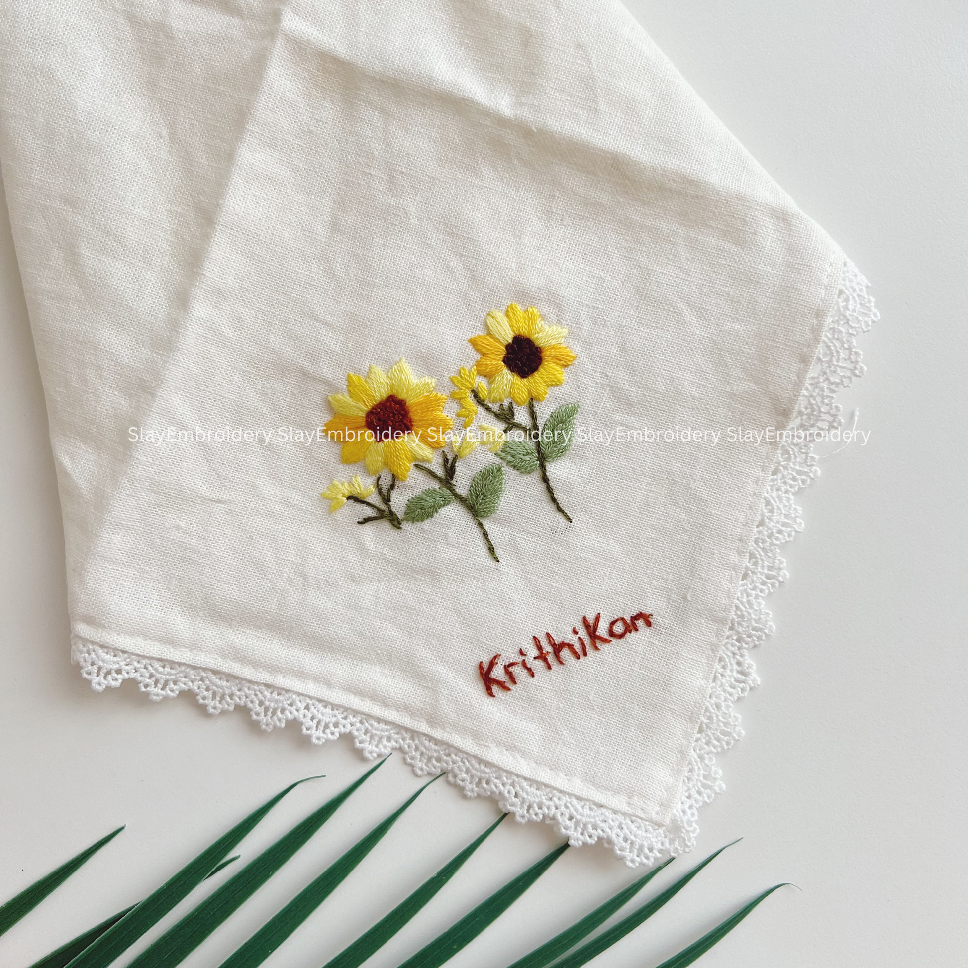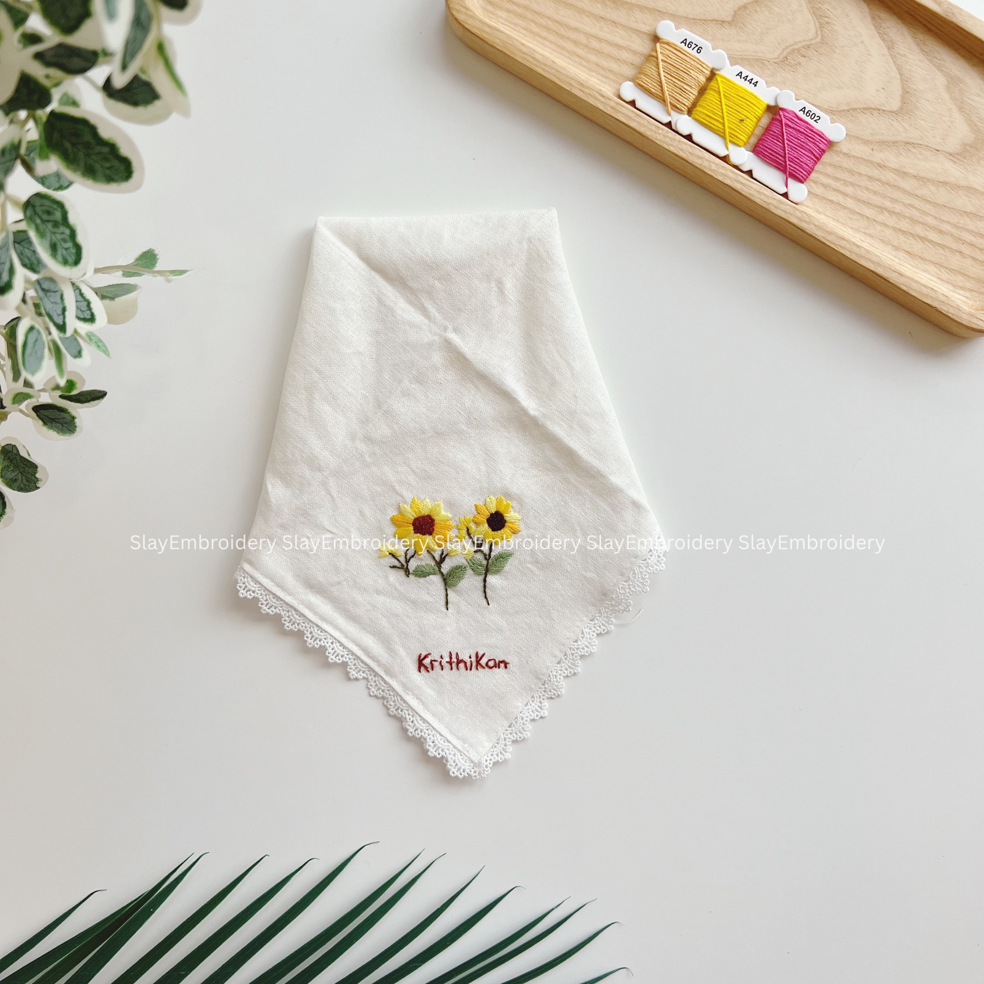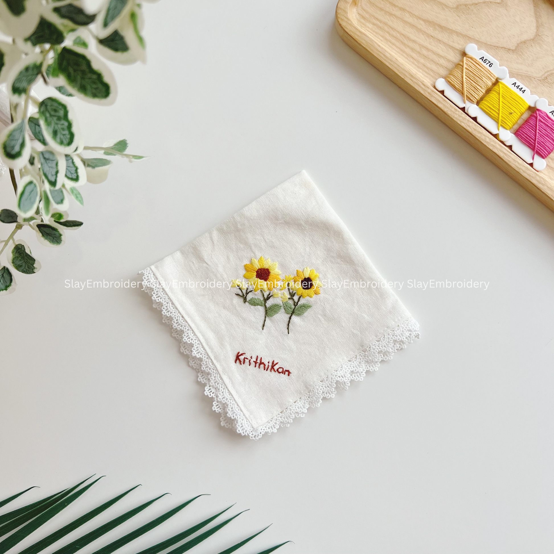 Two Little Daisies Wedding Handkerchief, Custom Embroidered Handkerchief, Linen Handkerchiefs