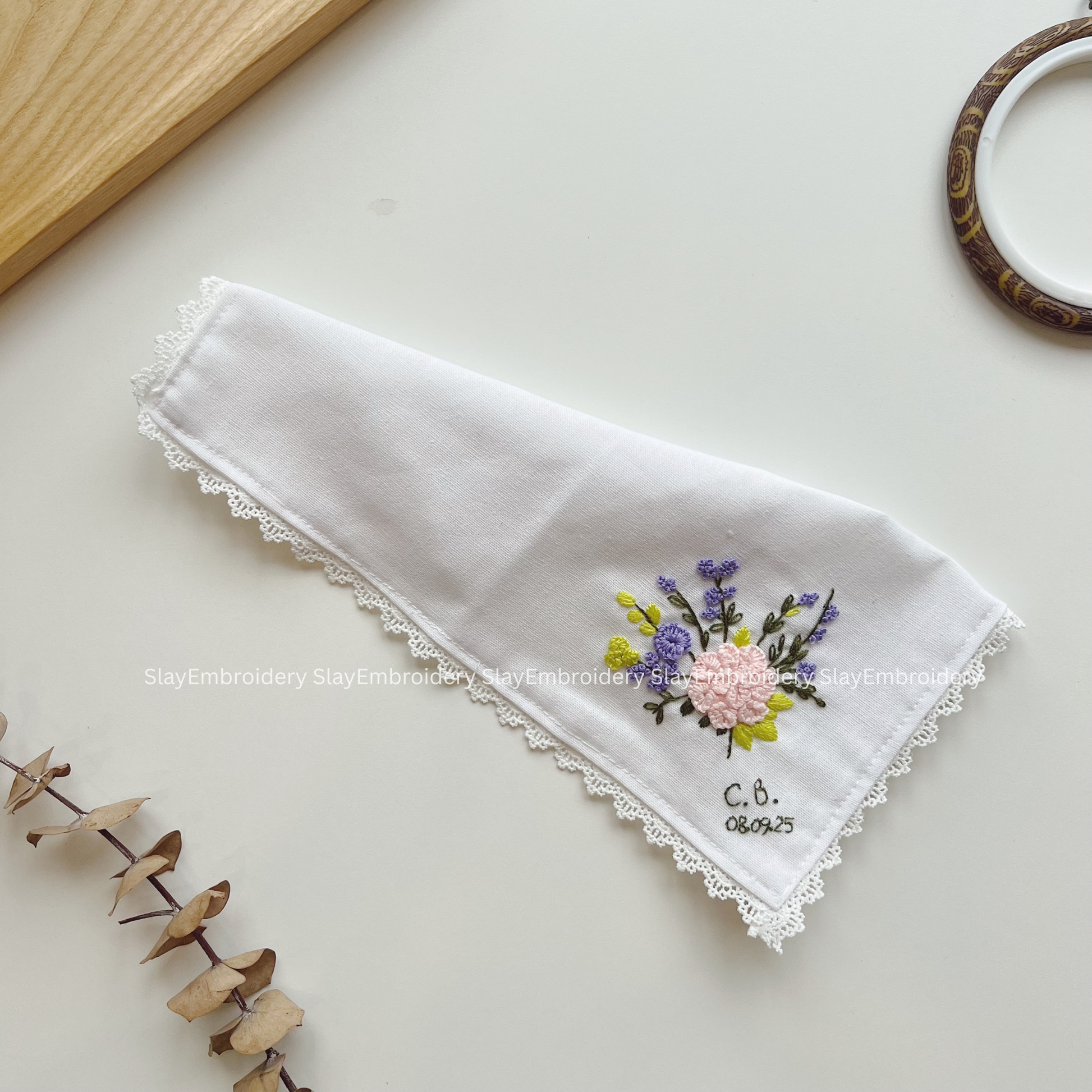 Pastel Garden Wedding Handkerchief, Custom Embroidered Handkerchief, Linen Handkerchiefs