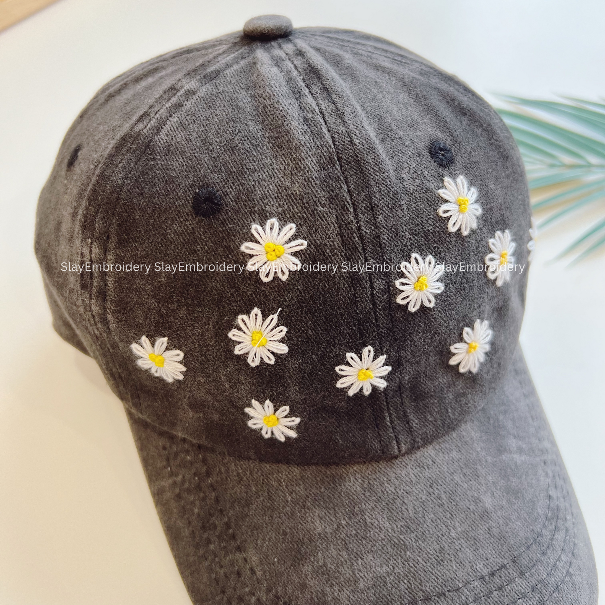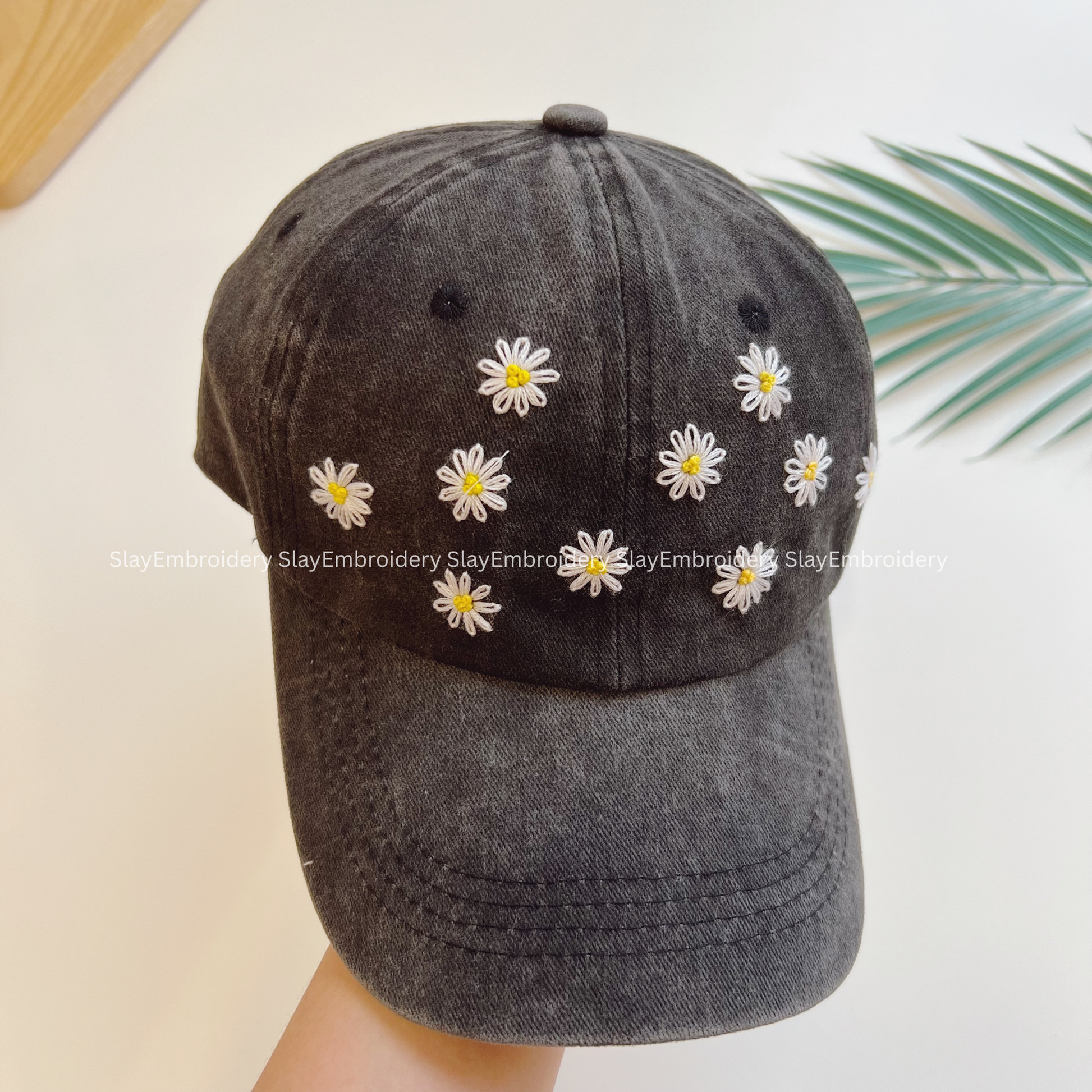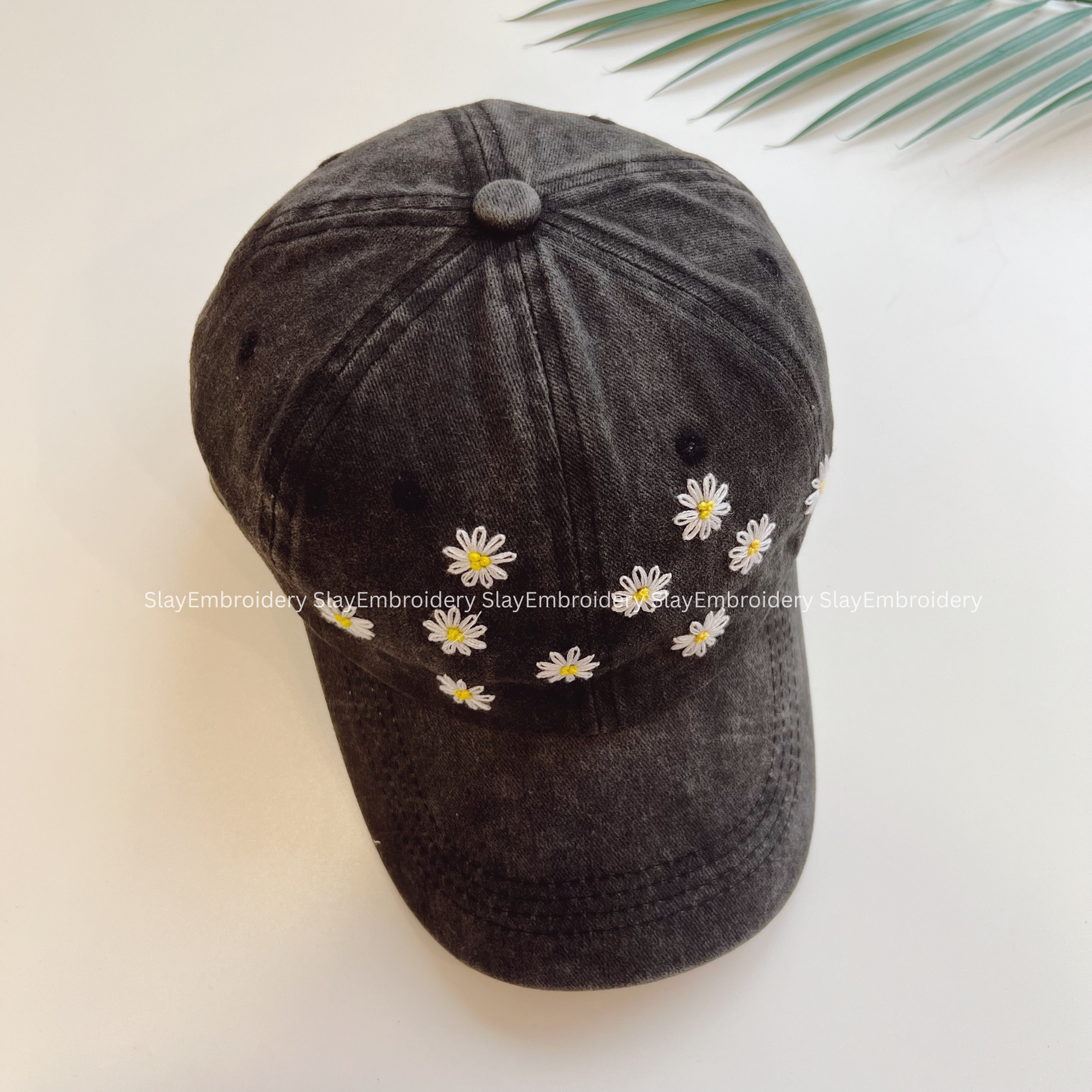 Daisy Meadow Summer Hand Embroidery Hat Vintage Hat Washed Baseball Cap
