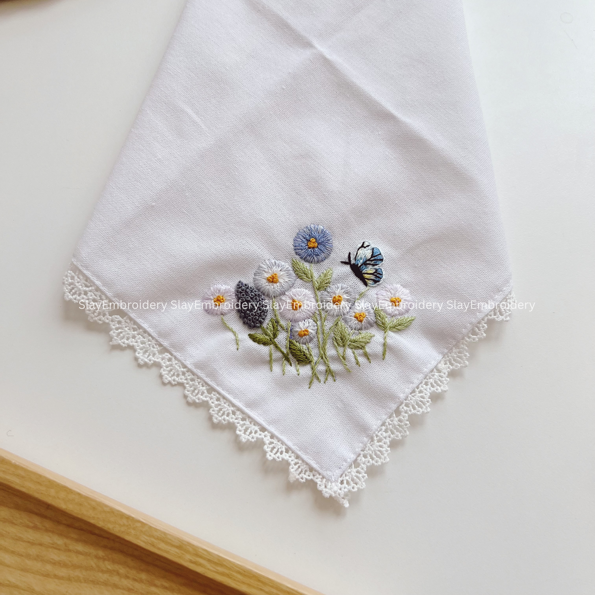 Whispers of Spring Wedding Handkerchief, Custom Embroidered Handkerchief, Linen Handkerchiefs