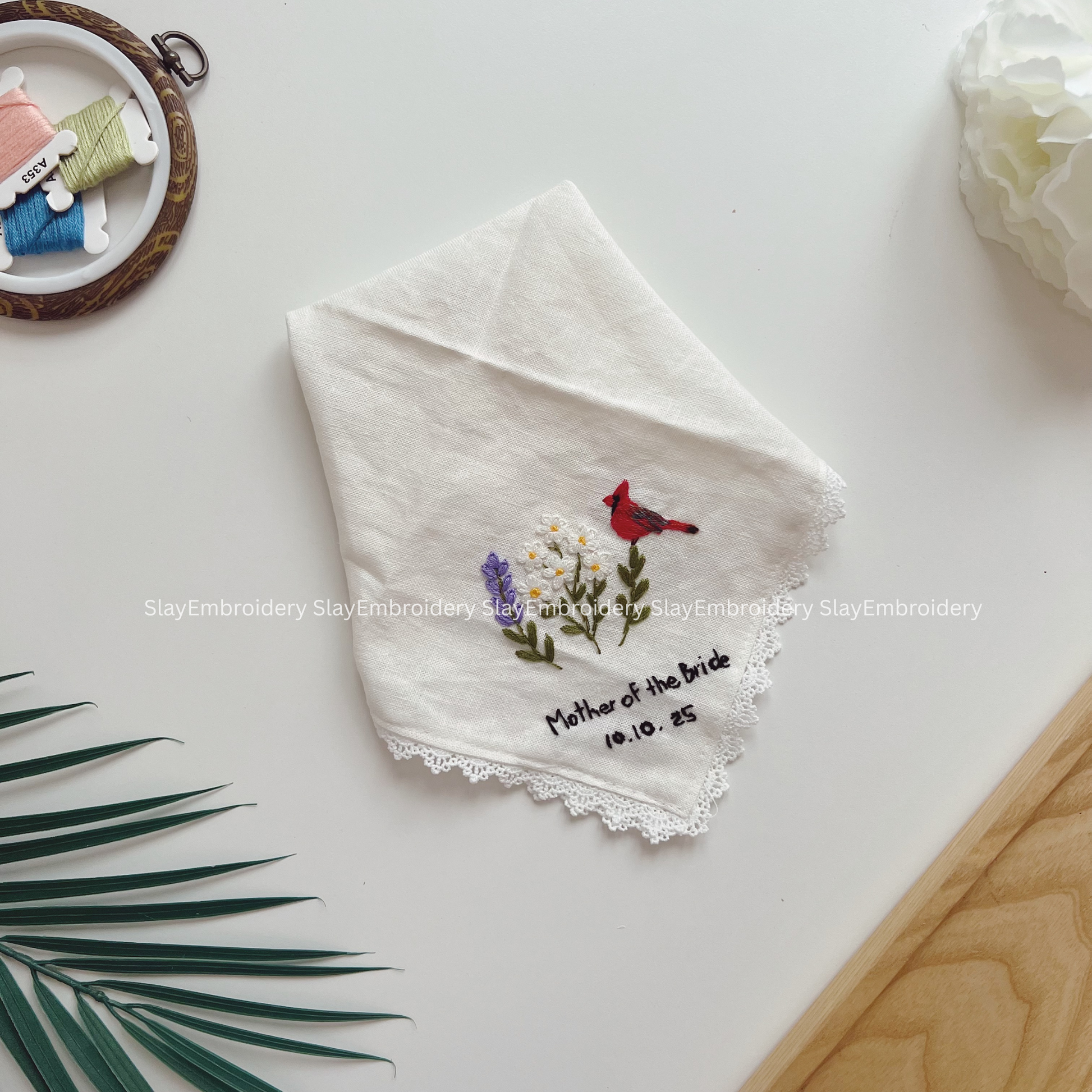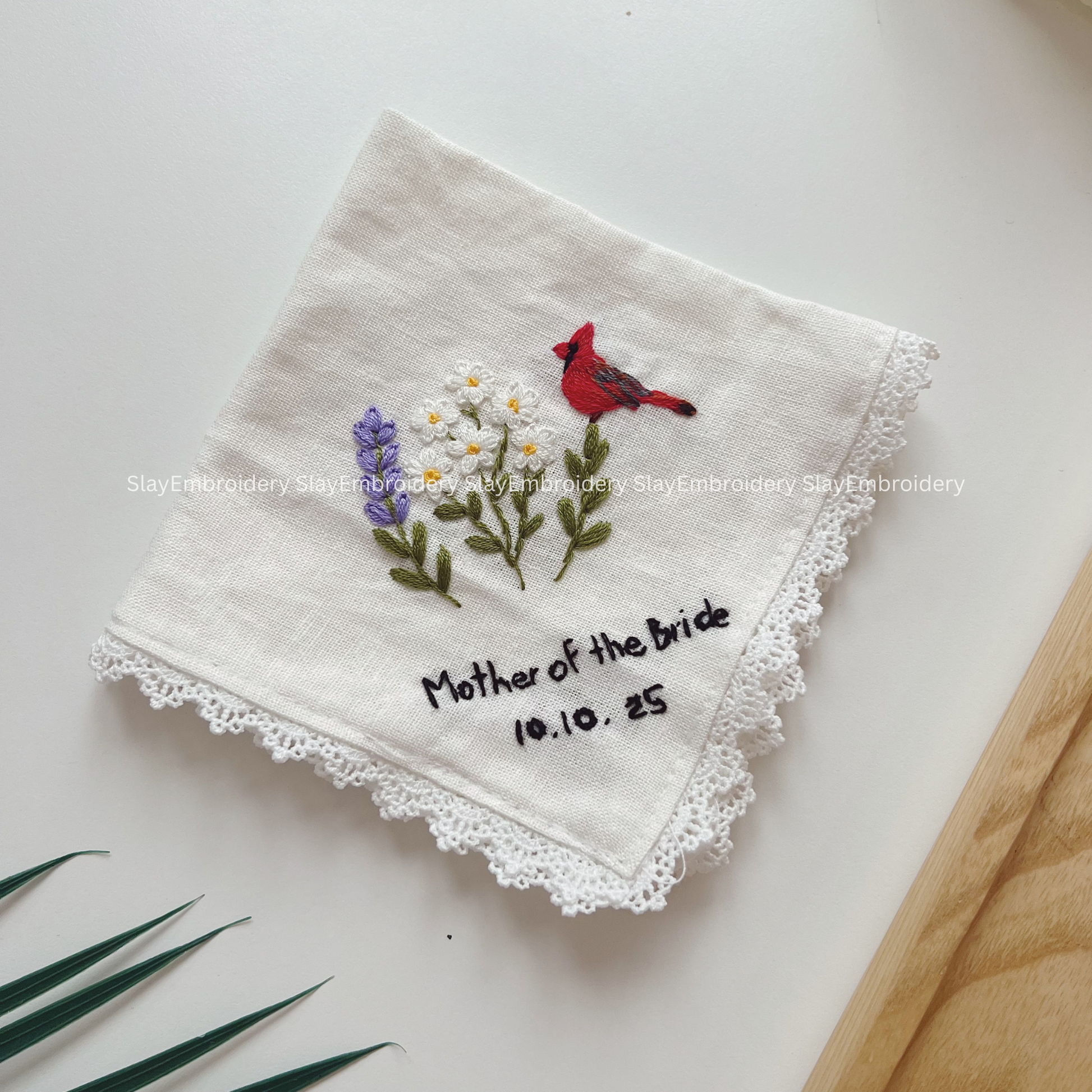 Daisy & Lavender Wedding Handkerchief, Custom Embroidered Handkerchief, Linen Handkerchiefs