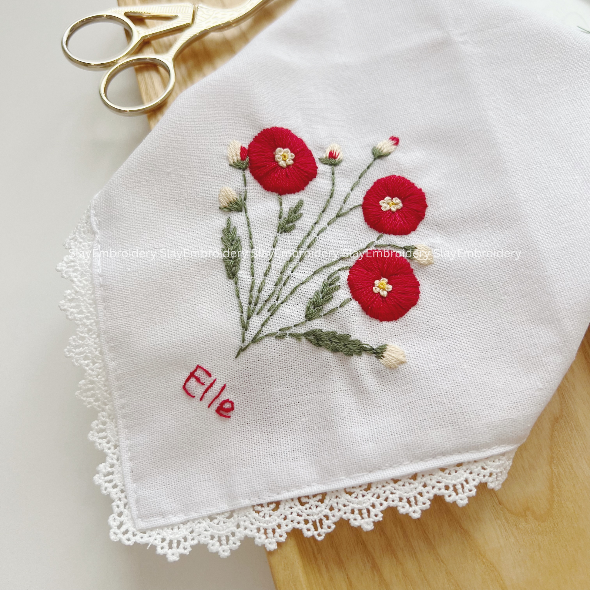 Poppy Garden Wedding Handkerchief, Custom Embroidered Handkerchief, Linen Handkerchiefs