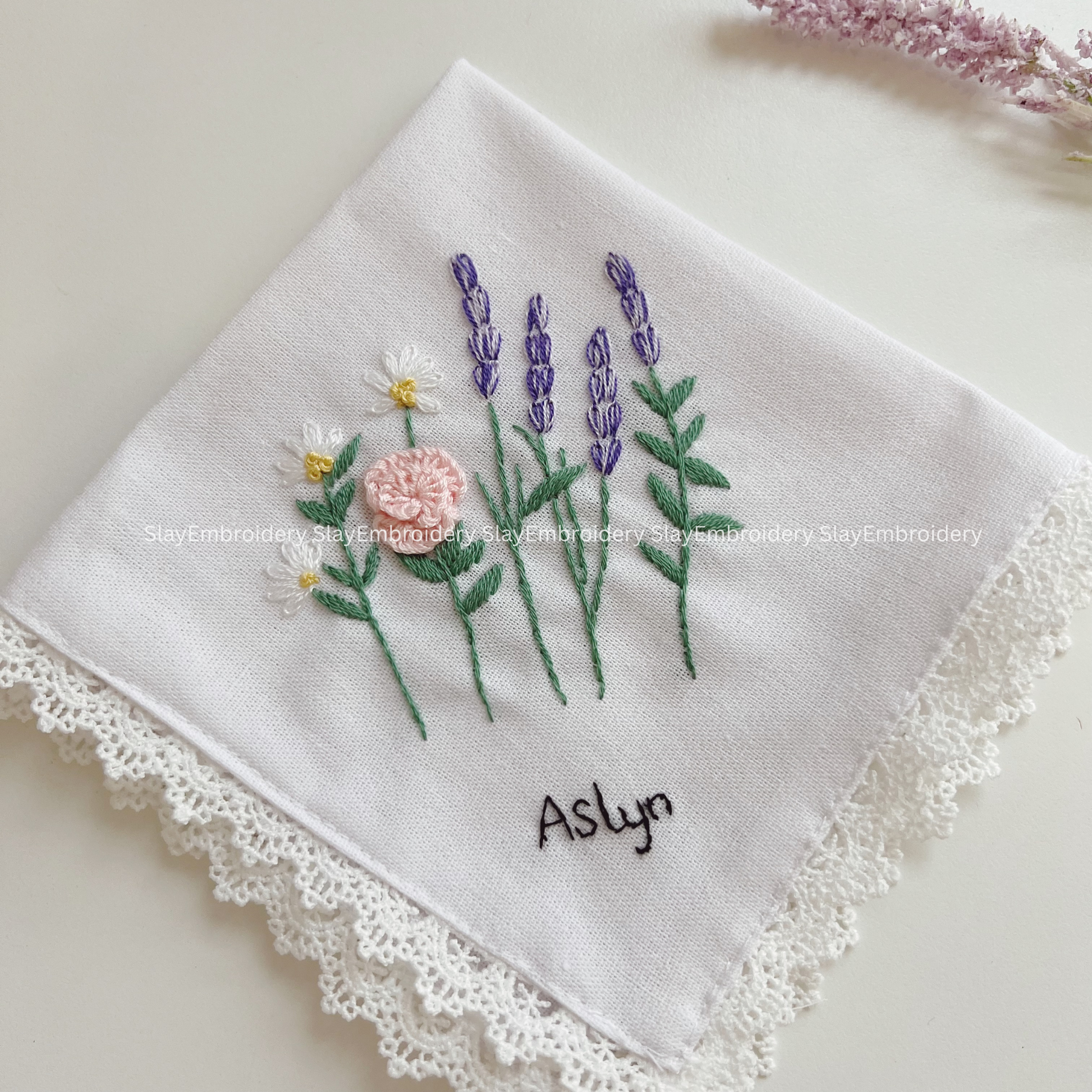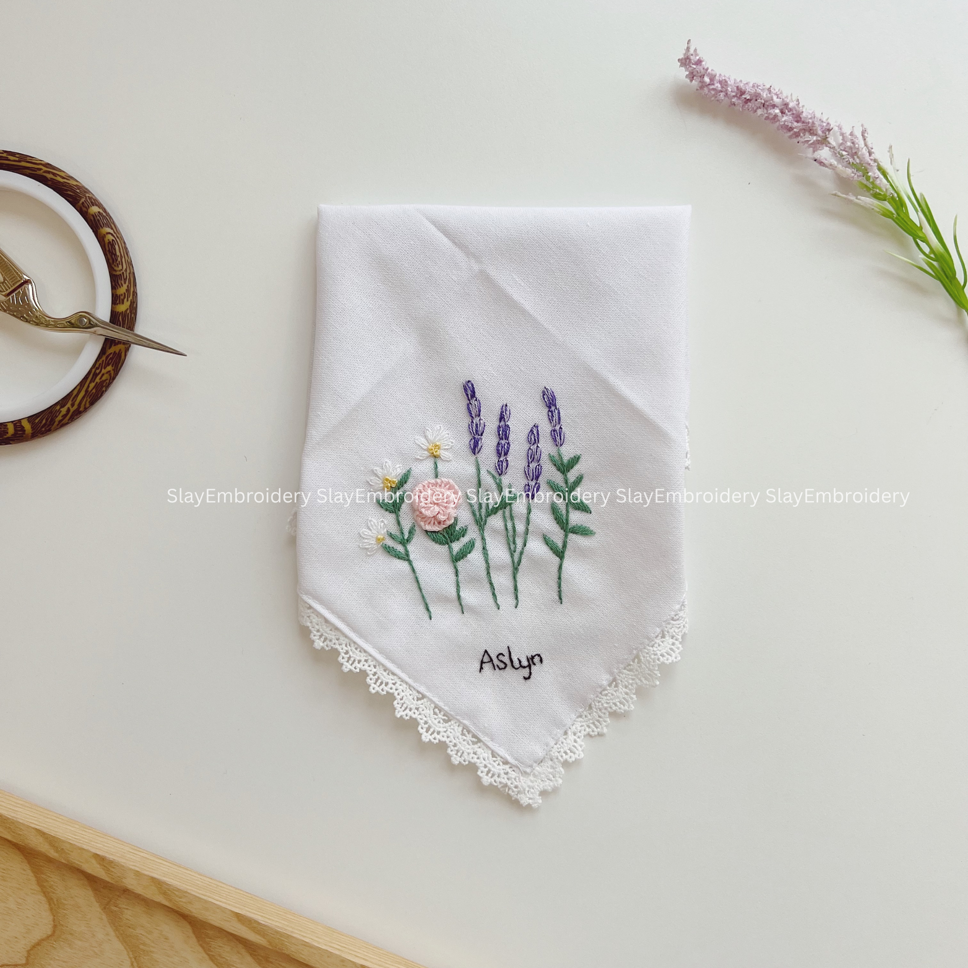 Summer Meadow Wedding Handkerchief, Custom Embroidered Handkerchief, Linen Handkerchiefs