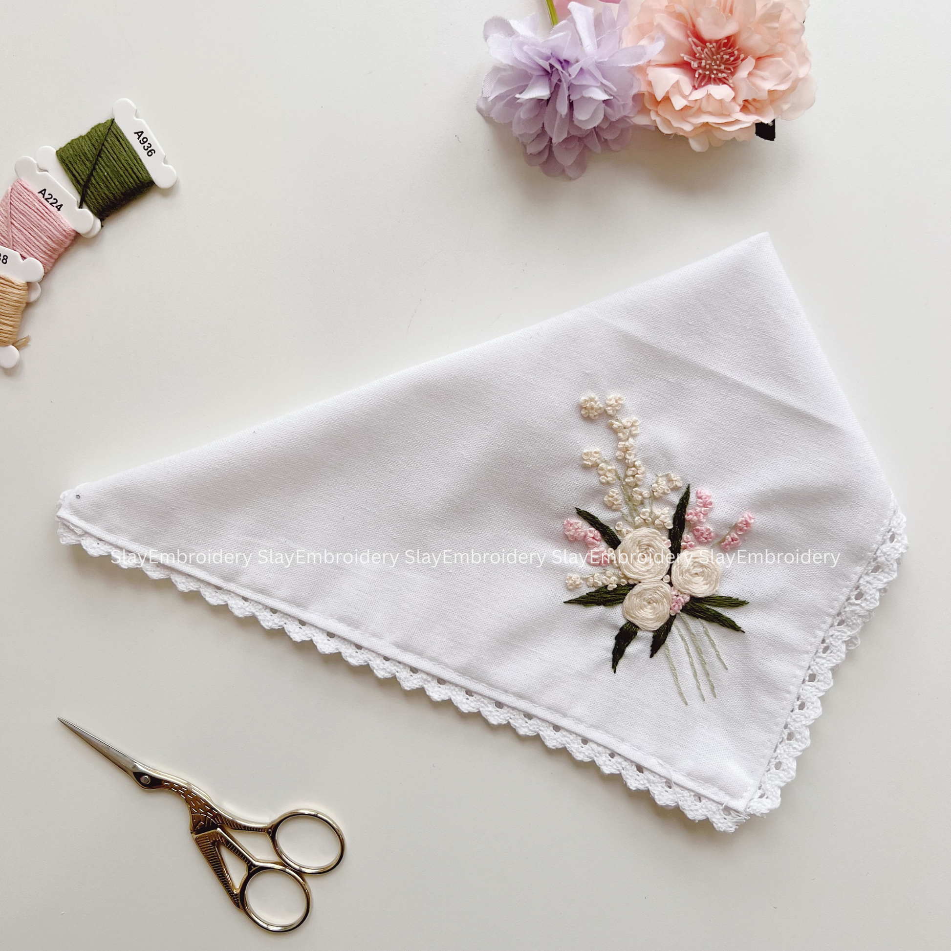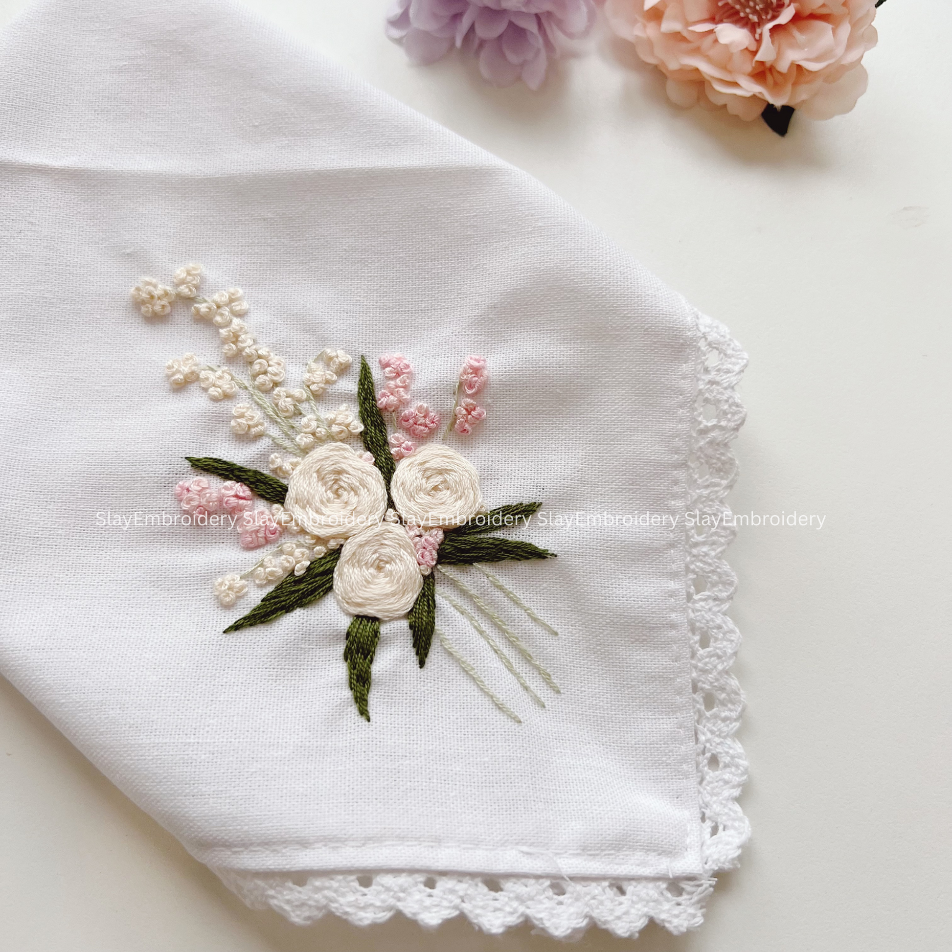 Rose Wedding Handkerchief, Custom Embroidered Handkerchief, Linen Handkerchiefs