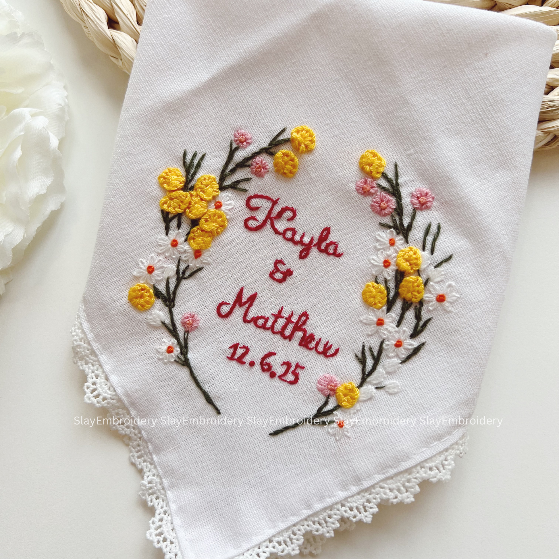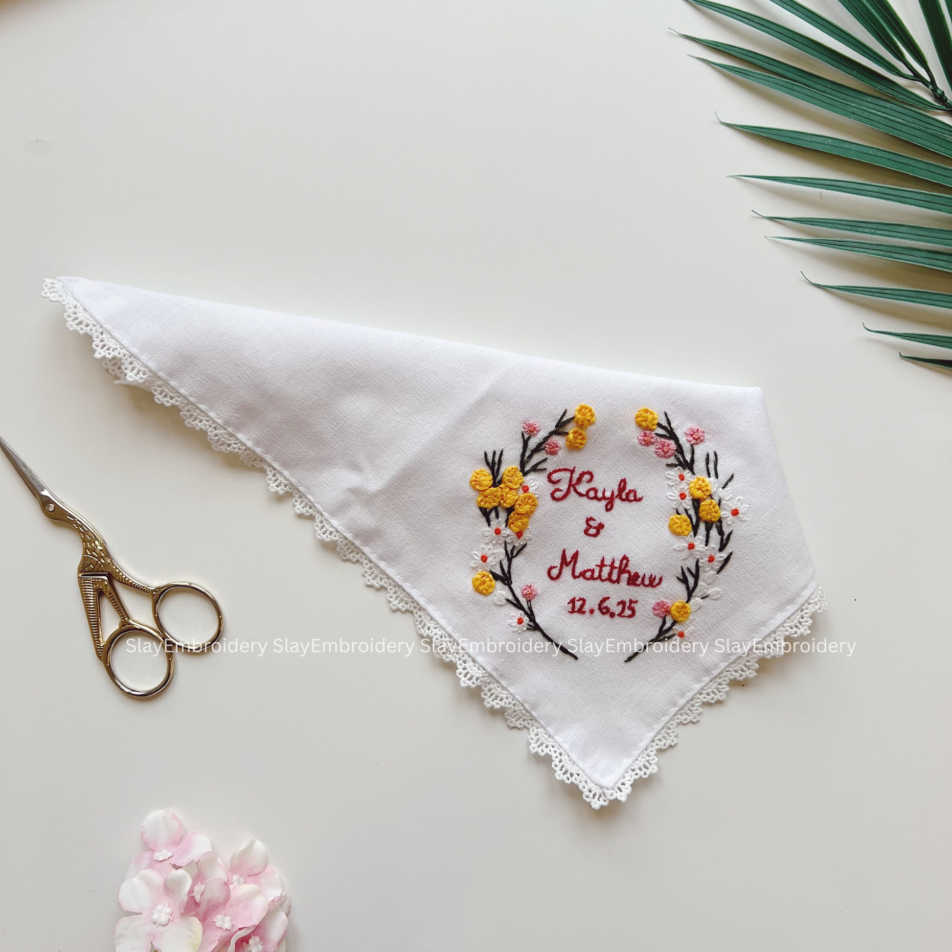 Whispering Petals Wedding Handkerchief, Custom Embroidered Handkerchief, Linen Handkerchiefs