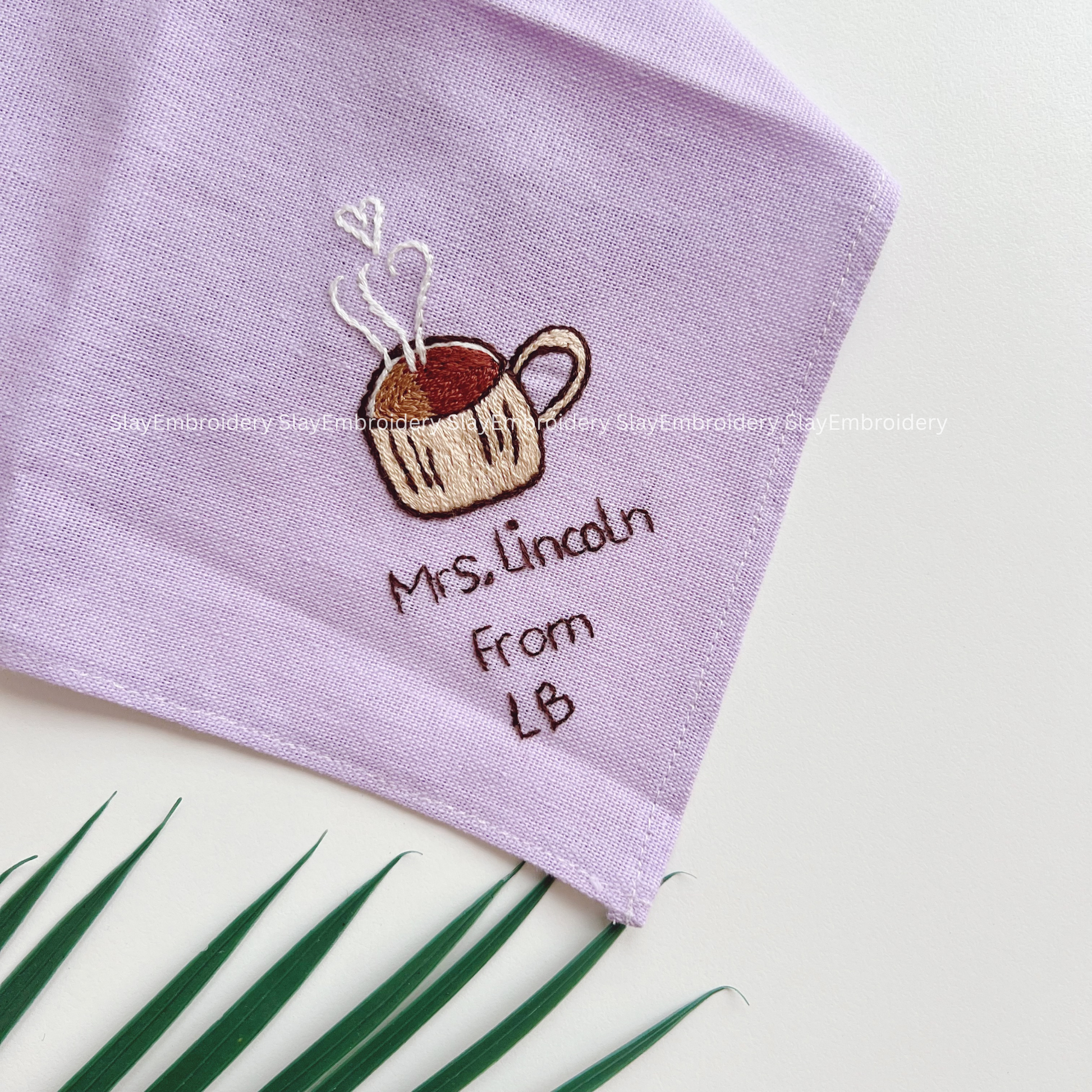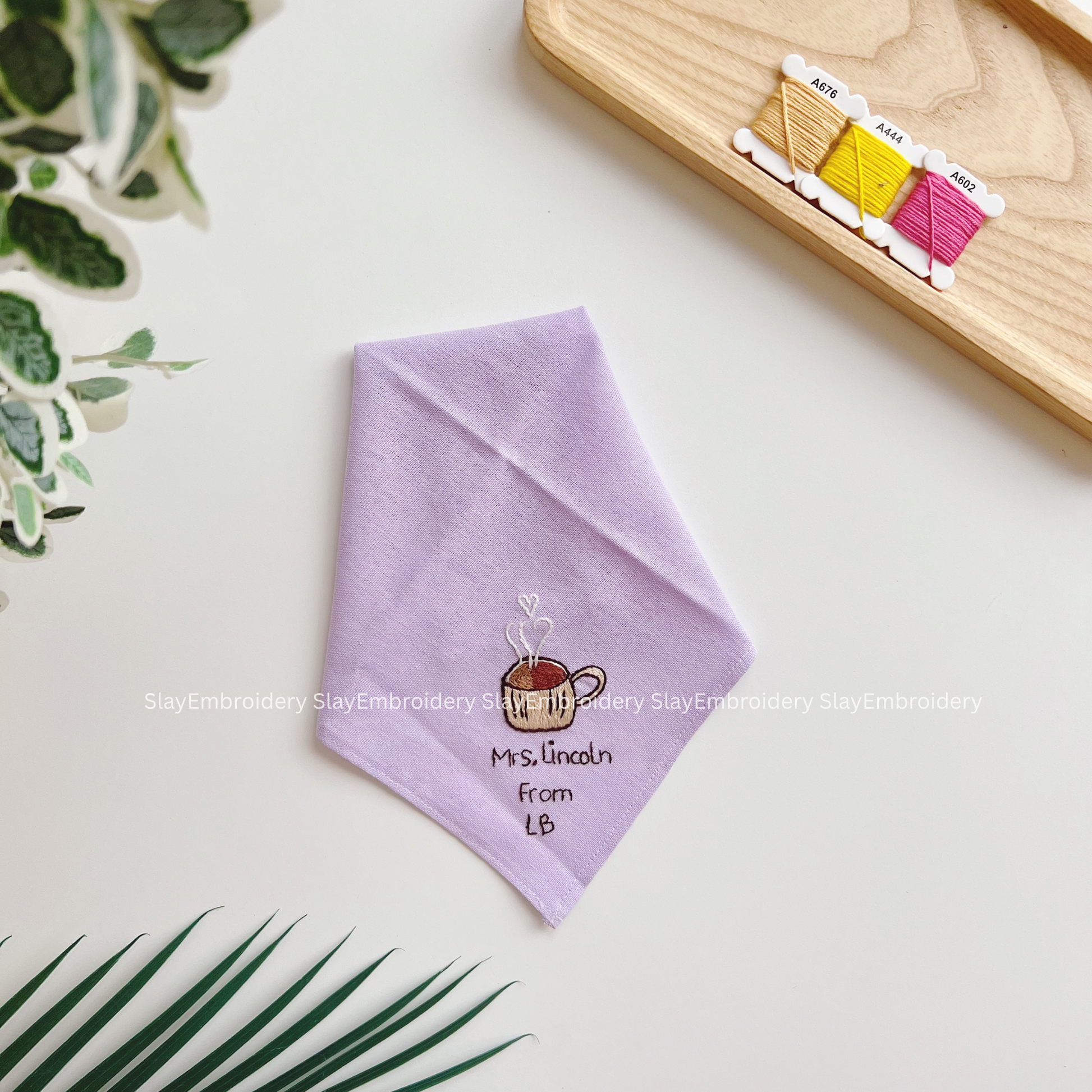 Coffee Cup Wedding Handkerchief, Custom Embroidered Handkerchief